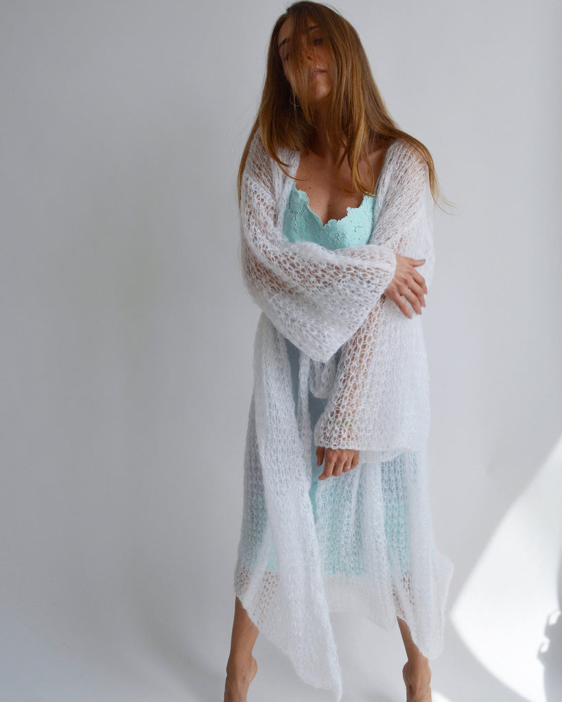 Hello, I'm the one, who won't let you down - white mohair cardigan.