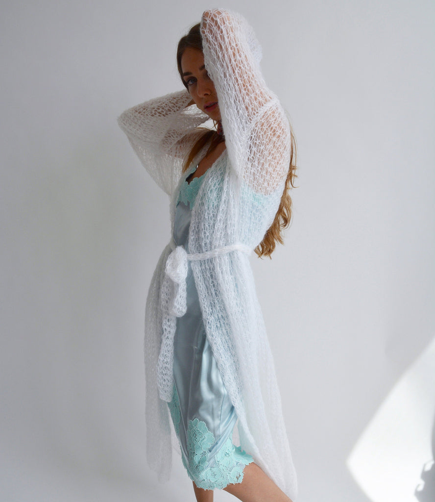 White mohair wedding cardigan, Wedding light bolero, Bridal hand knit cardigan, Wedding shrug, Wedding knit jacket, Bridal cover up