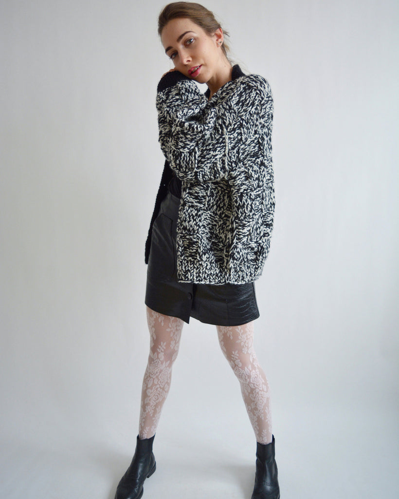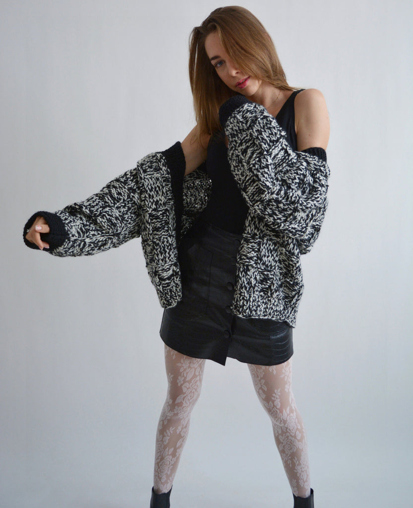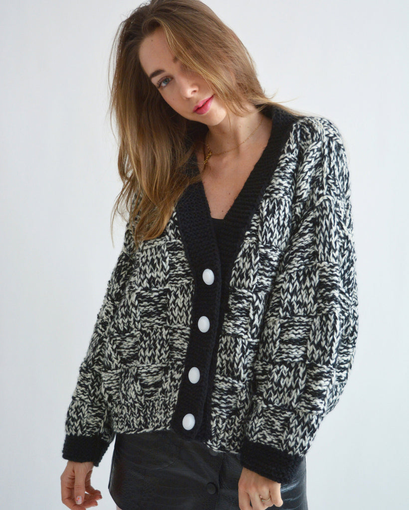 Hello, I'm the one, who won't let you down - black and white merino wool cardigan.