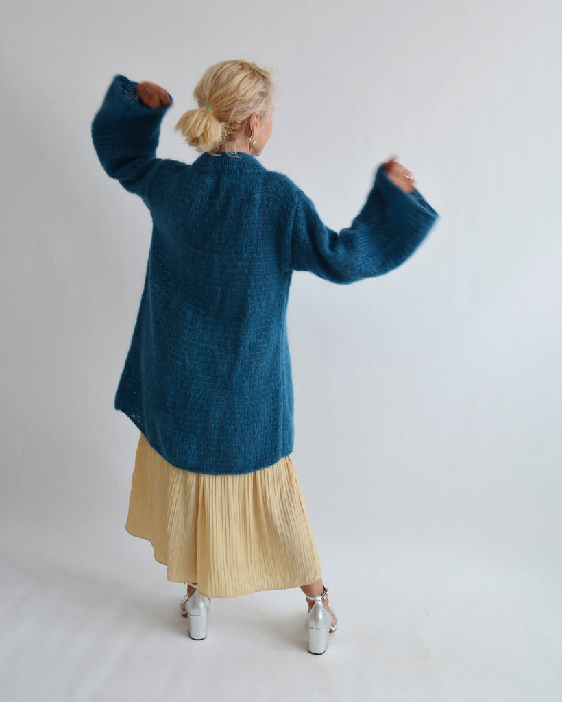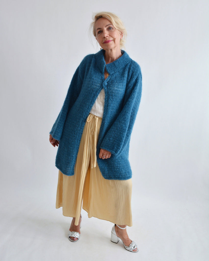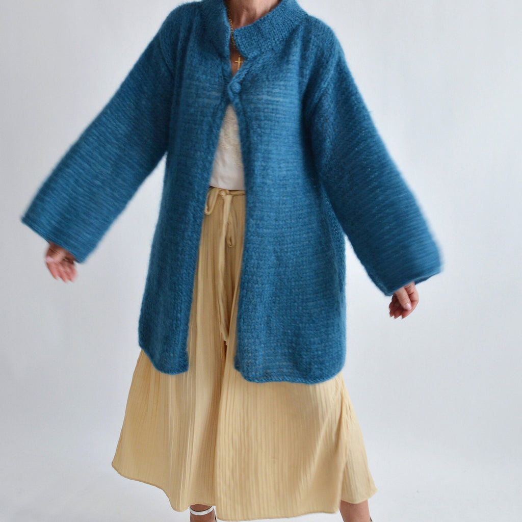 Blue long mohair cardigan Handknit soft cape Thick warm cardigan Buttoned open cardigan Kimono extravagant cardigan Wool chunky cardigan