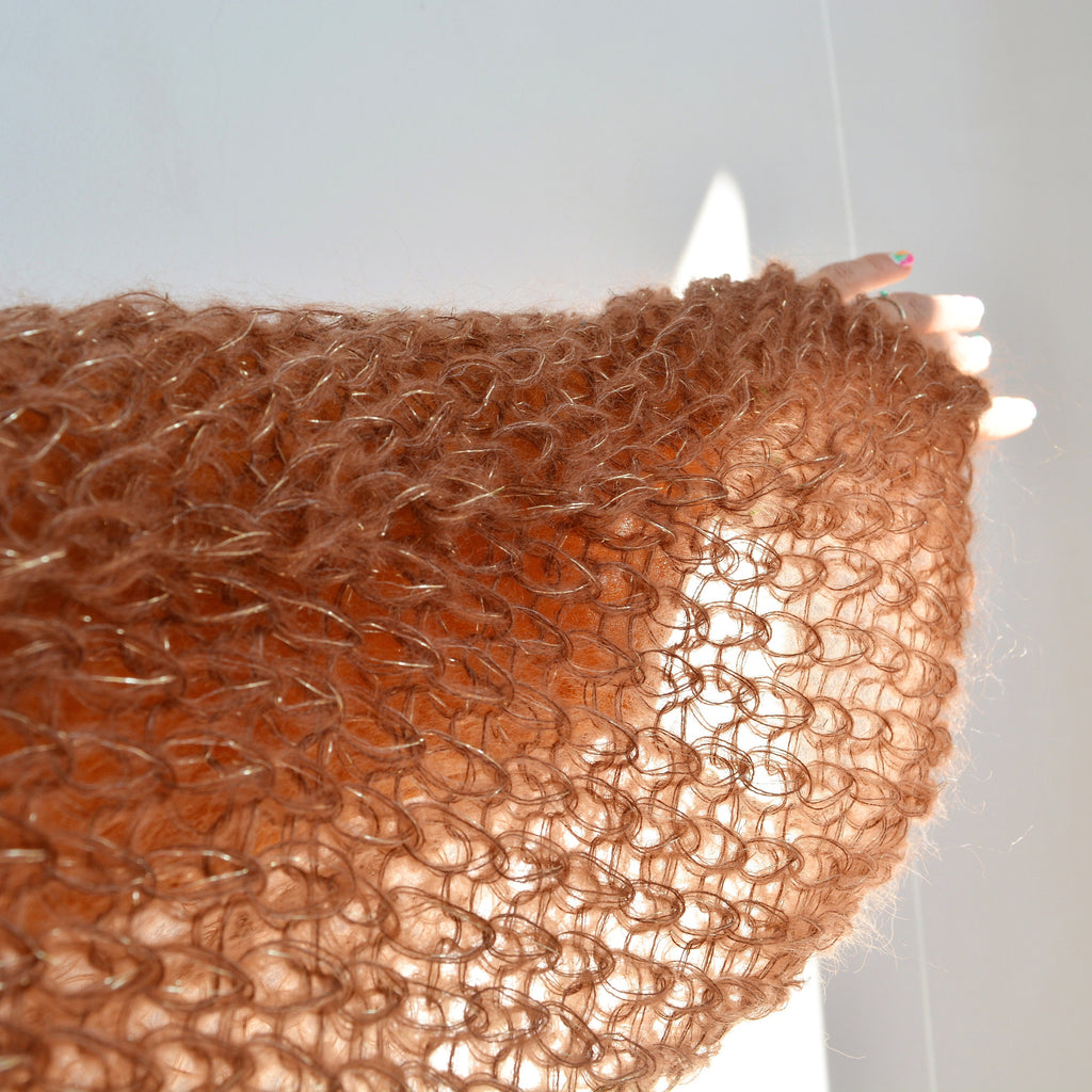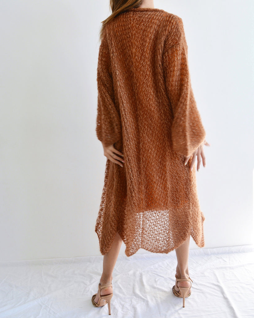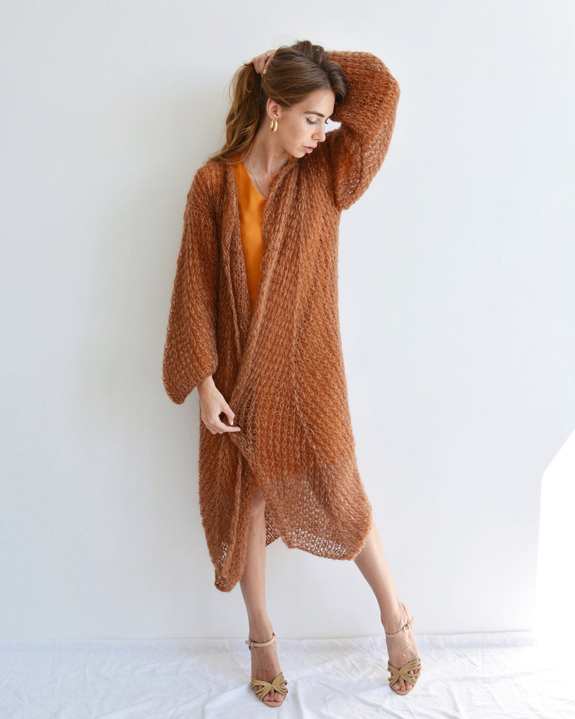 Burnt orange mohair cardigan with lurex, Rust long kimono cardigan, Light handknit oversized cardigan, Maxi wrap cardigan
