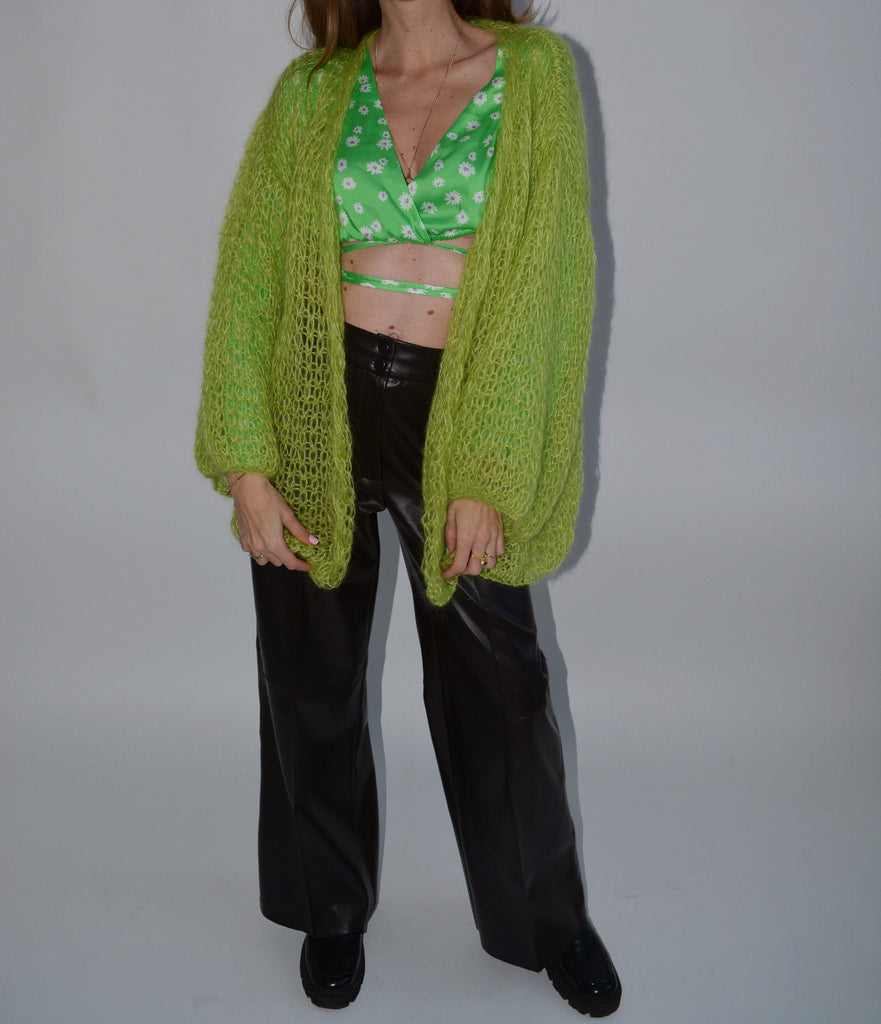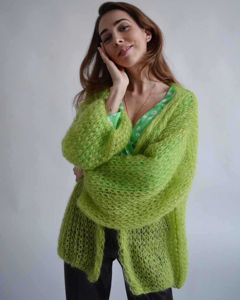 Hello, I'm the one, who won't let you down - lime green silk mohair cardigan.