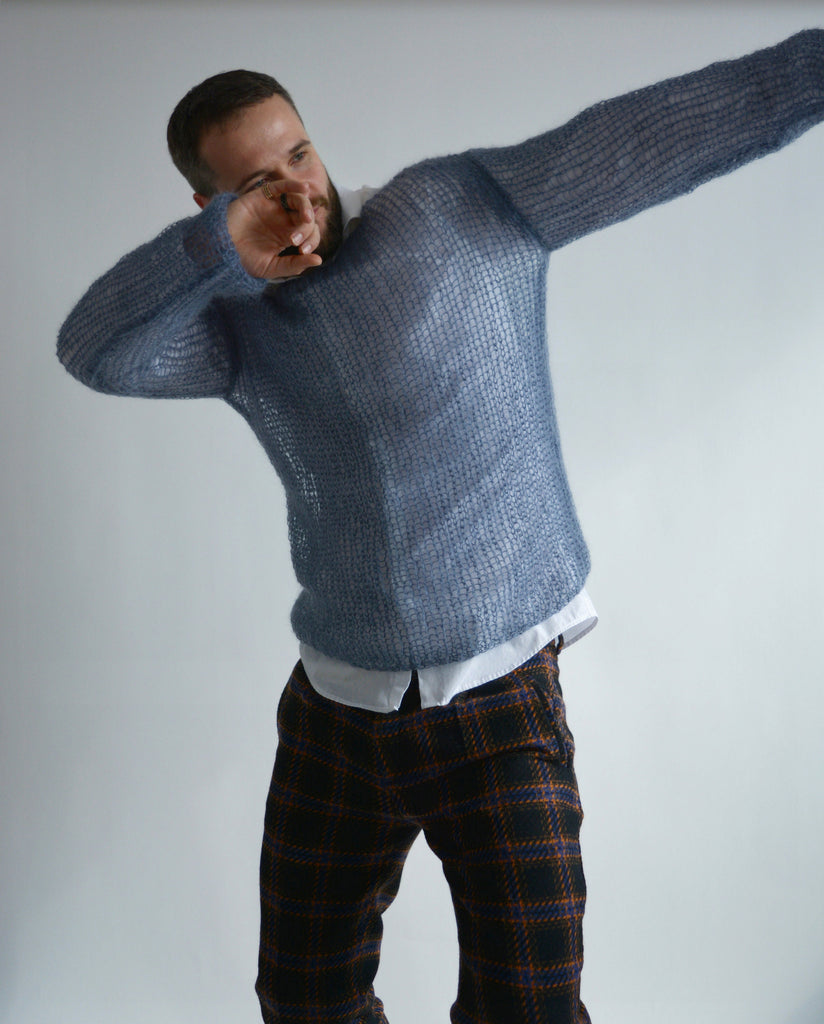 Hello, I'm the one, who won't let you down - blue mens mohair sweater.
