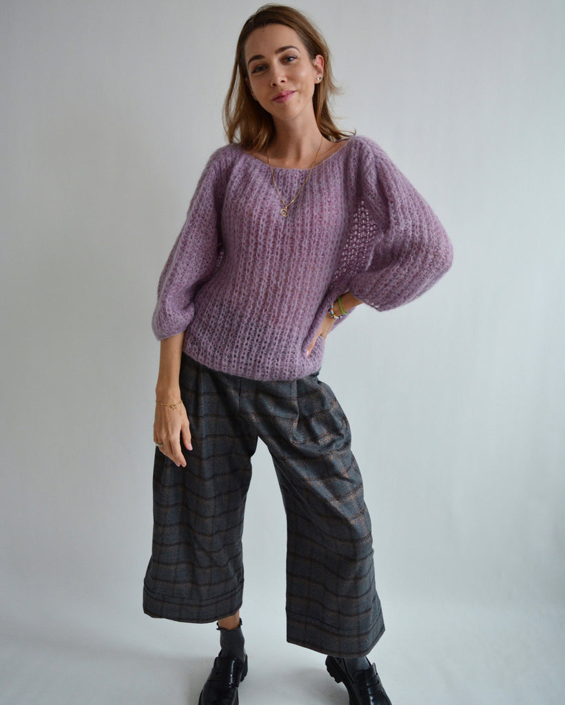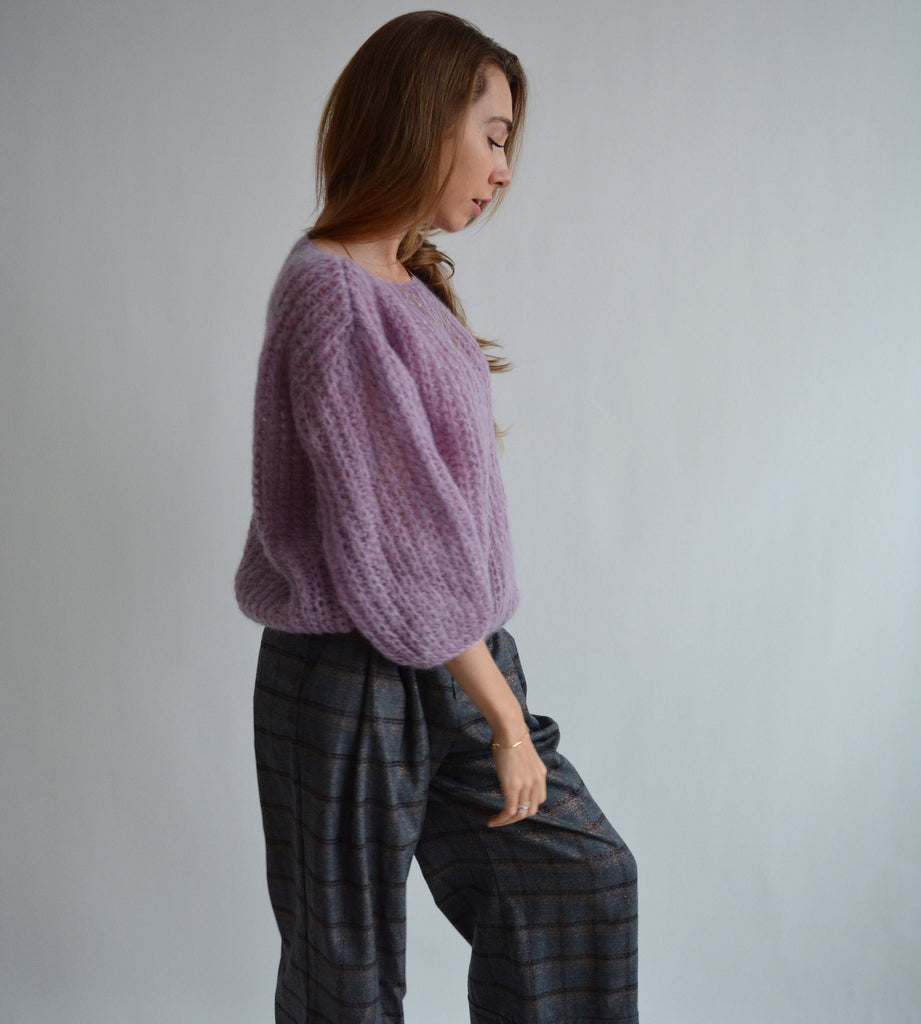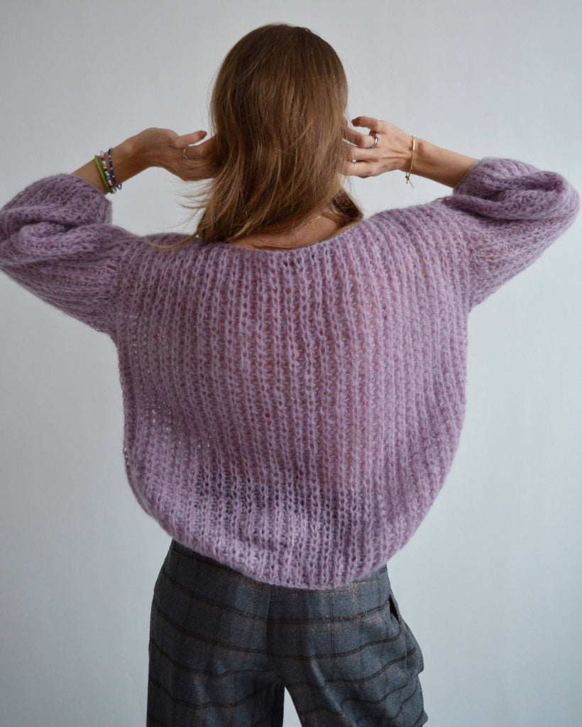 Purple fluffy mohair sweater Warm light sweater Handknit oversized sweater Unique chunky sweater Stylish basic sweater Wool bohemian sweater