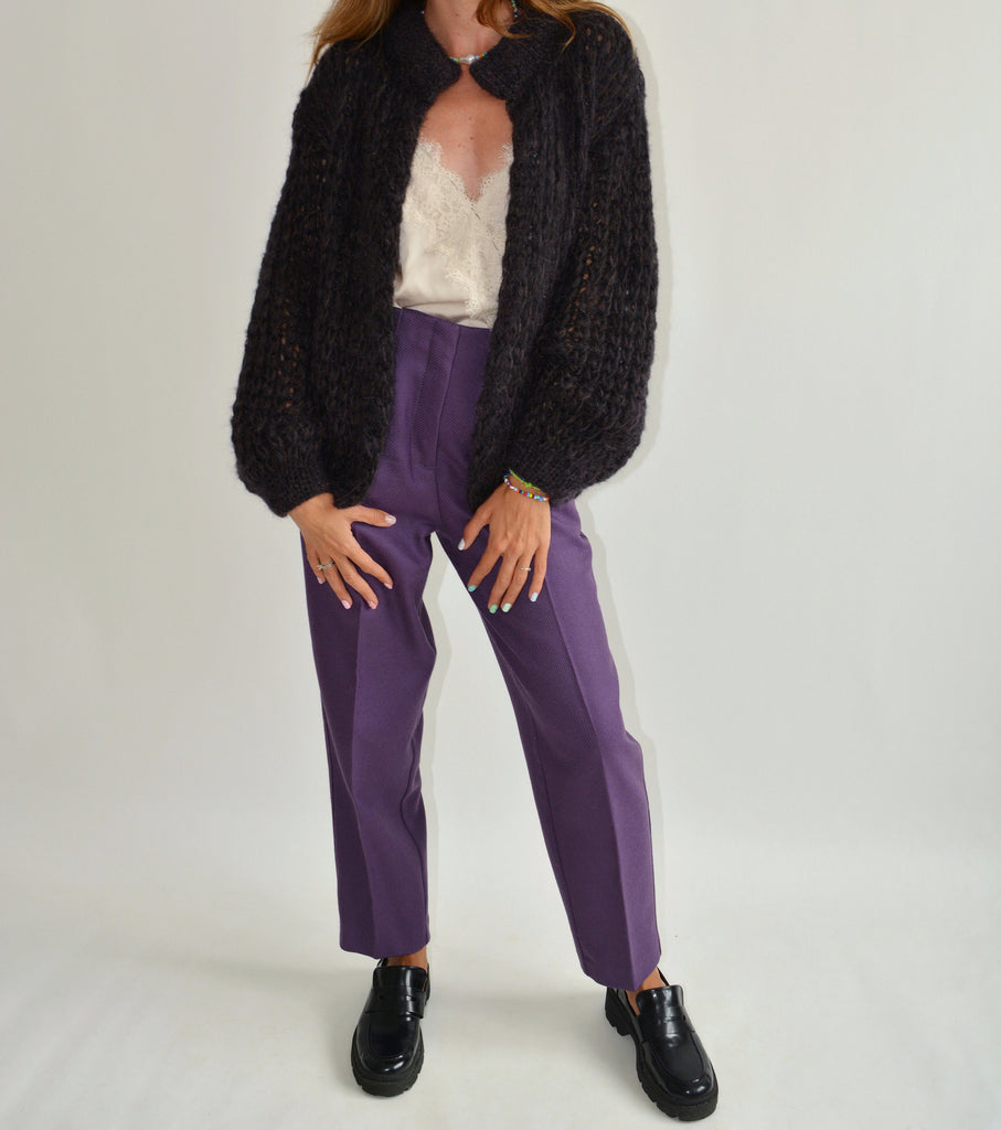 Hello, I'm the one, who won't let you down - eggplant brown cardigan.