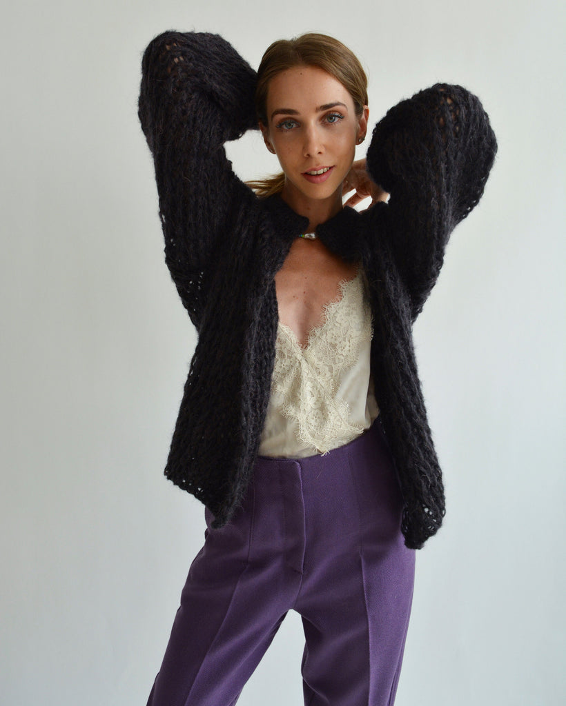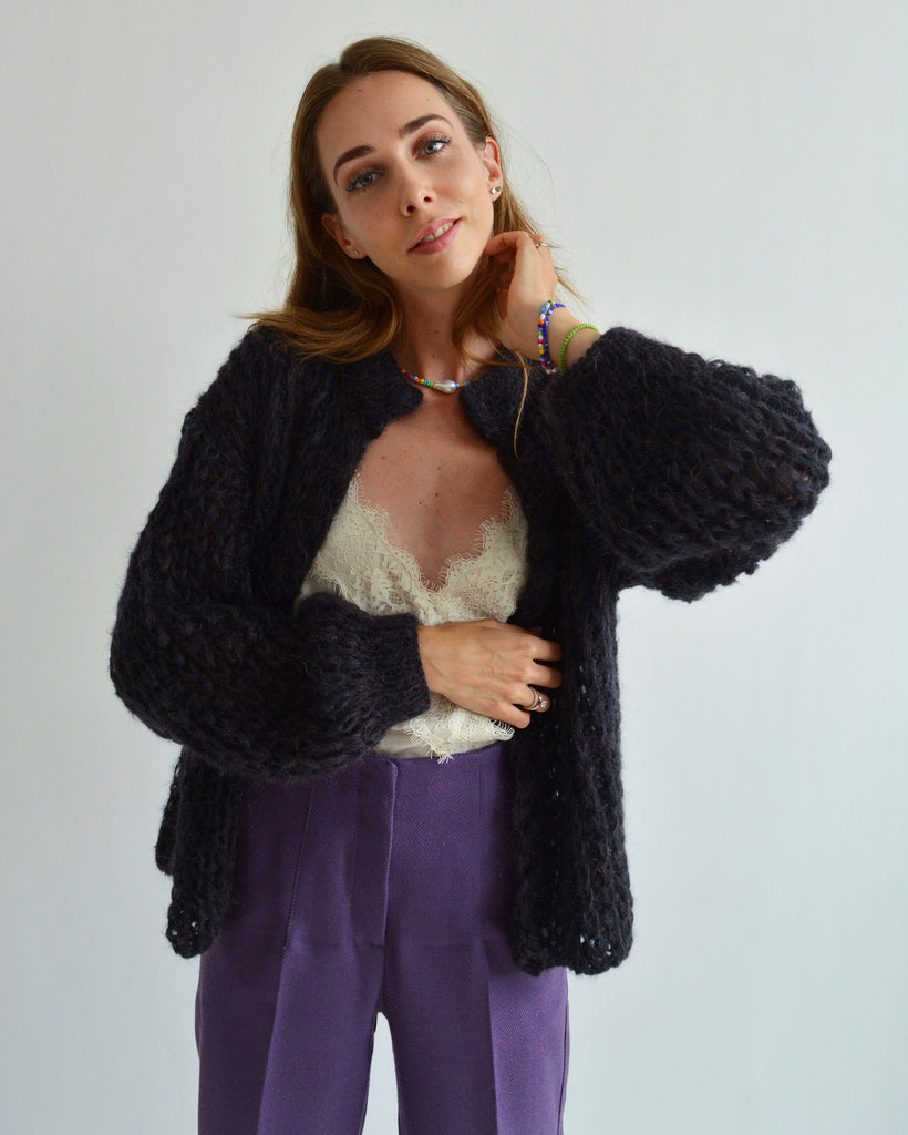 Eggplant brown mohair cardigan Cropped soft cardigan Handknit short wool cardigan Warm thick cardigan Loose oversized cardigan Sexy cardigan