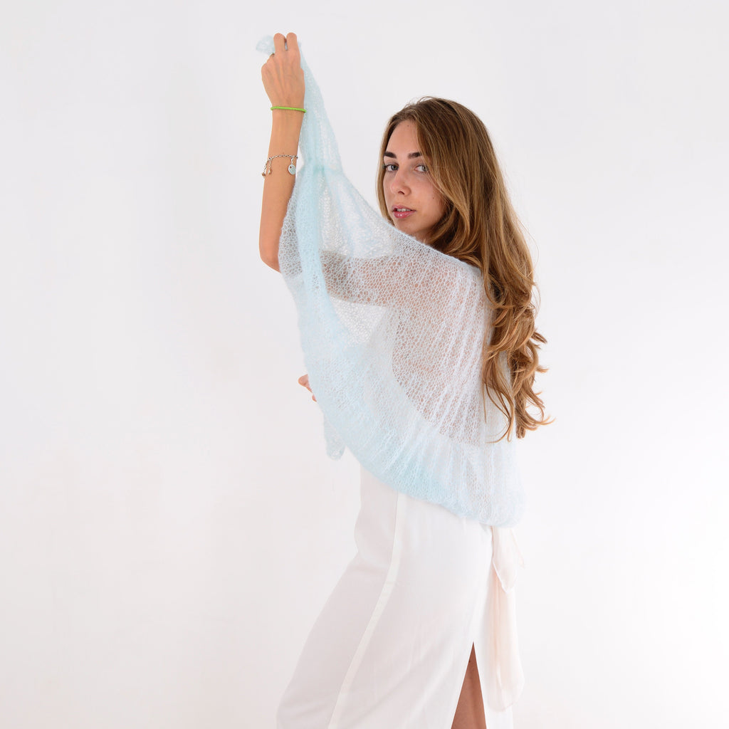 Mint mohair bridal shawl Teal handknit shawl Silk mohair shawl Wedding shrug Bridal bolero Evening bolero shrug Sheer shawl Bridal cover up