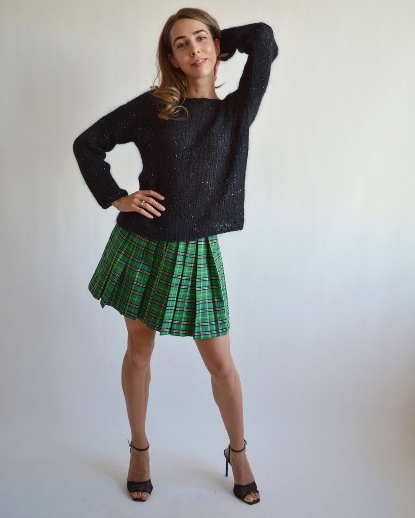 Black mohair sweater with paillettes Embroidered warm sweater Embellished handknit sweater Beautiful sexy sweater Soft wool sweater