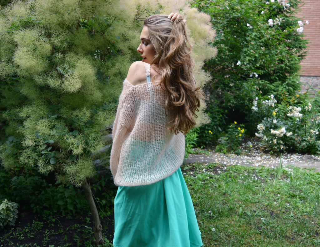 Bohemian beige sweater, Mohair sweater, Chunky knit sweater, Milk spring sweater, Soft knitted sweater, Loose sweater, Off-shoulder sweater