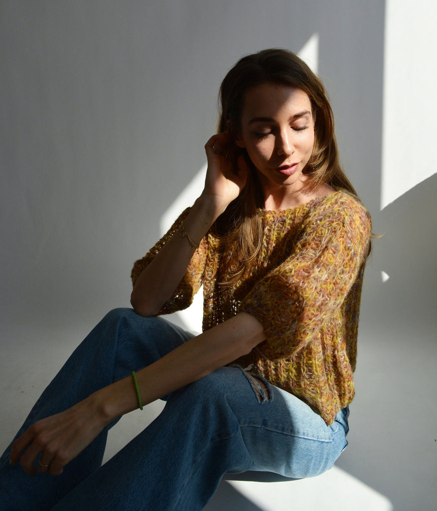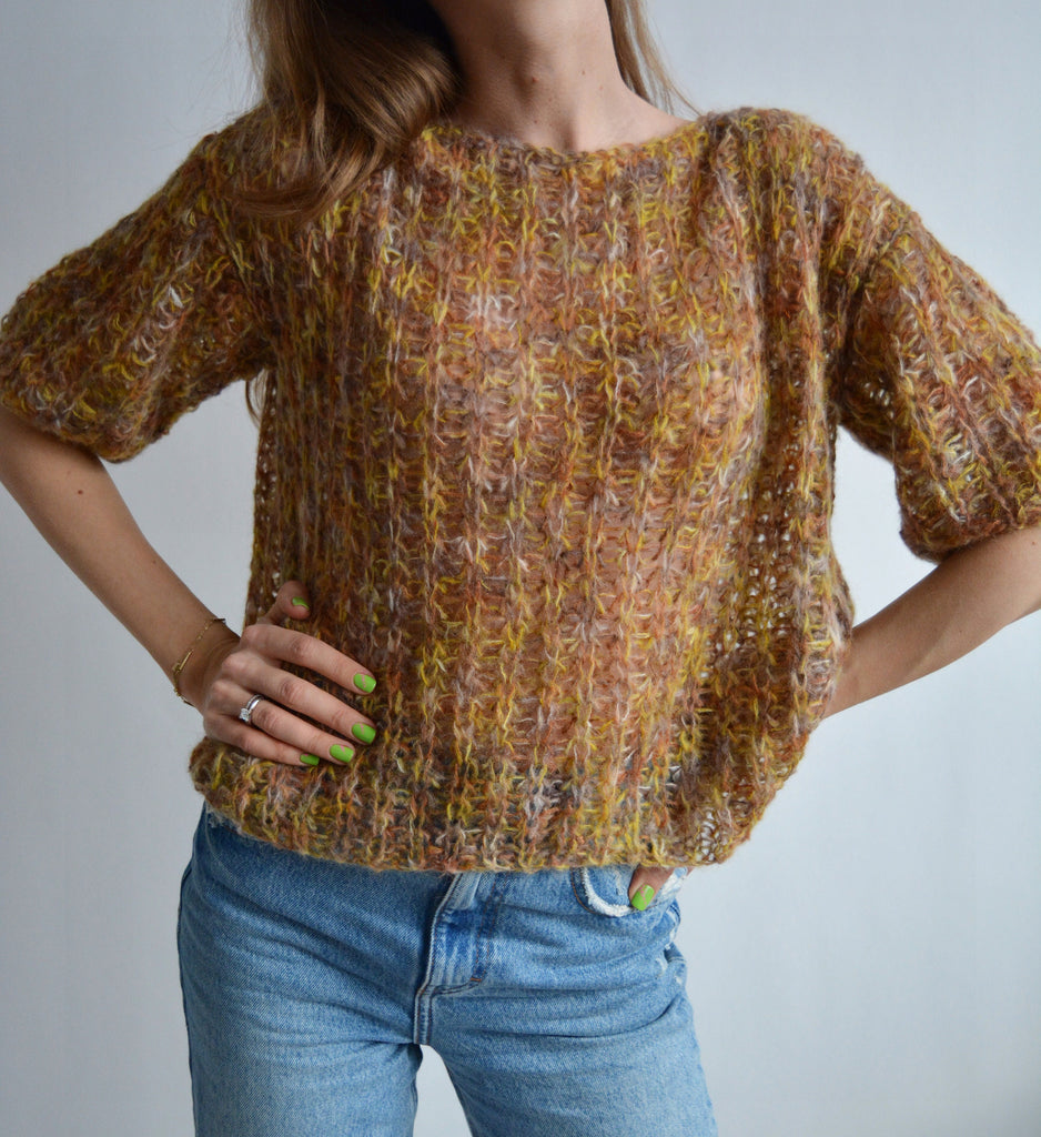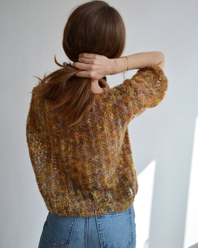 Brown rainbow sweater Mohair colorful sweater Alpaca soft sweater Handknit sexy sweater Bohemian unique sweater Cropped wool sweater