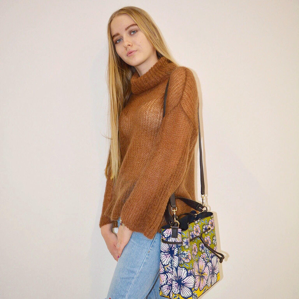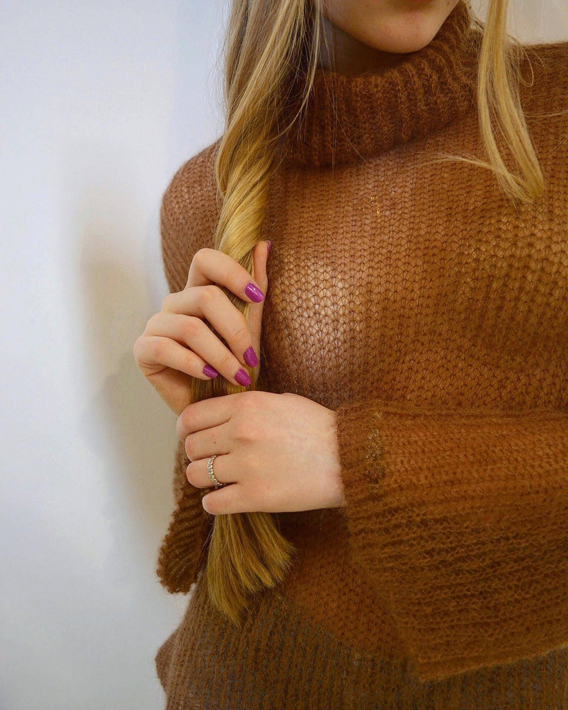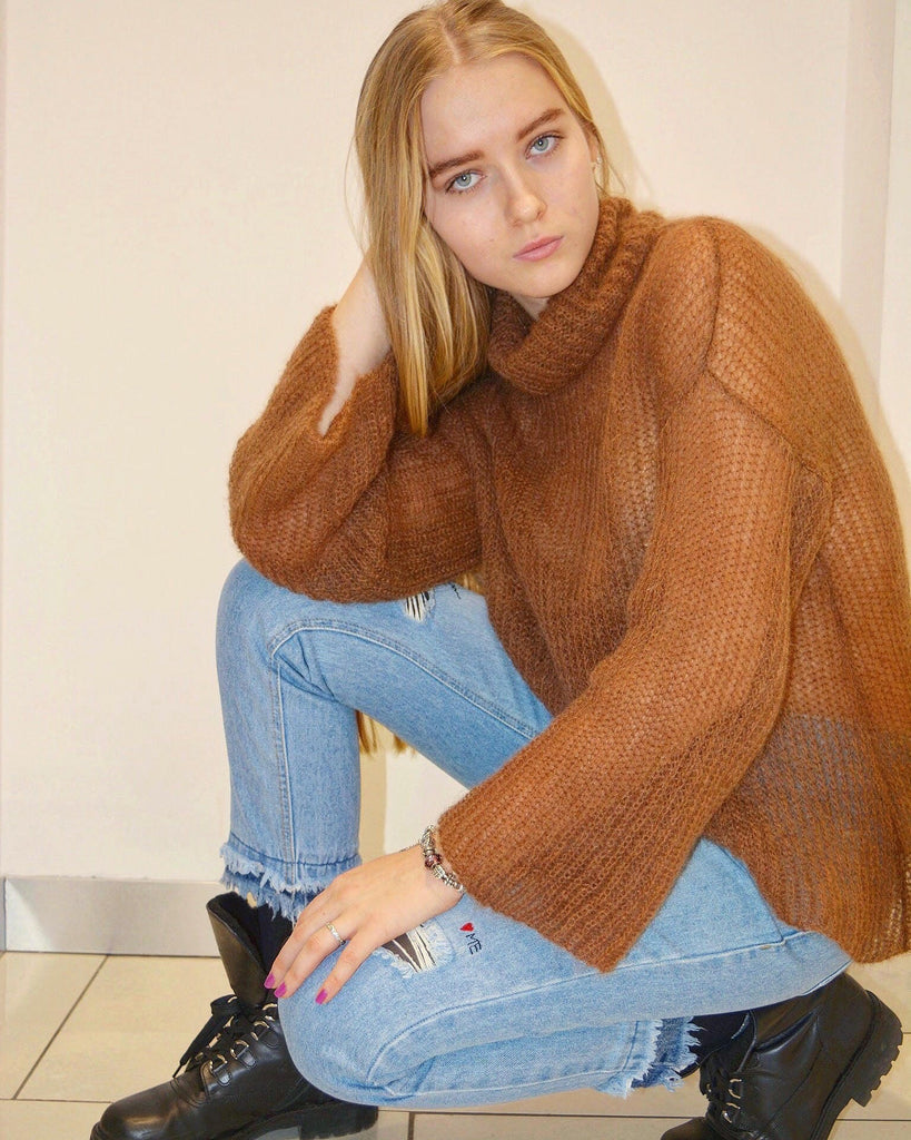 Coffee brown mohair sweater Turtleneck wool sweater Loose knit sweater Chunky knit sweater Light handknit sweater Oversize boho sweater