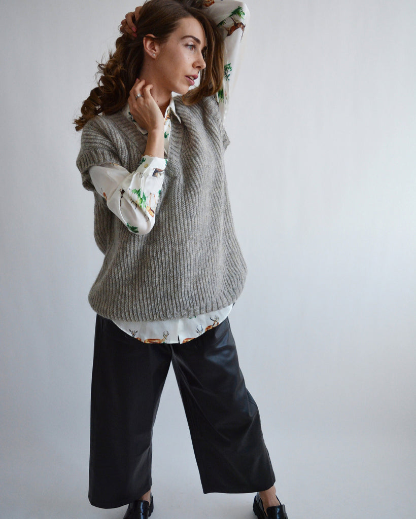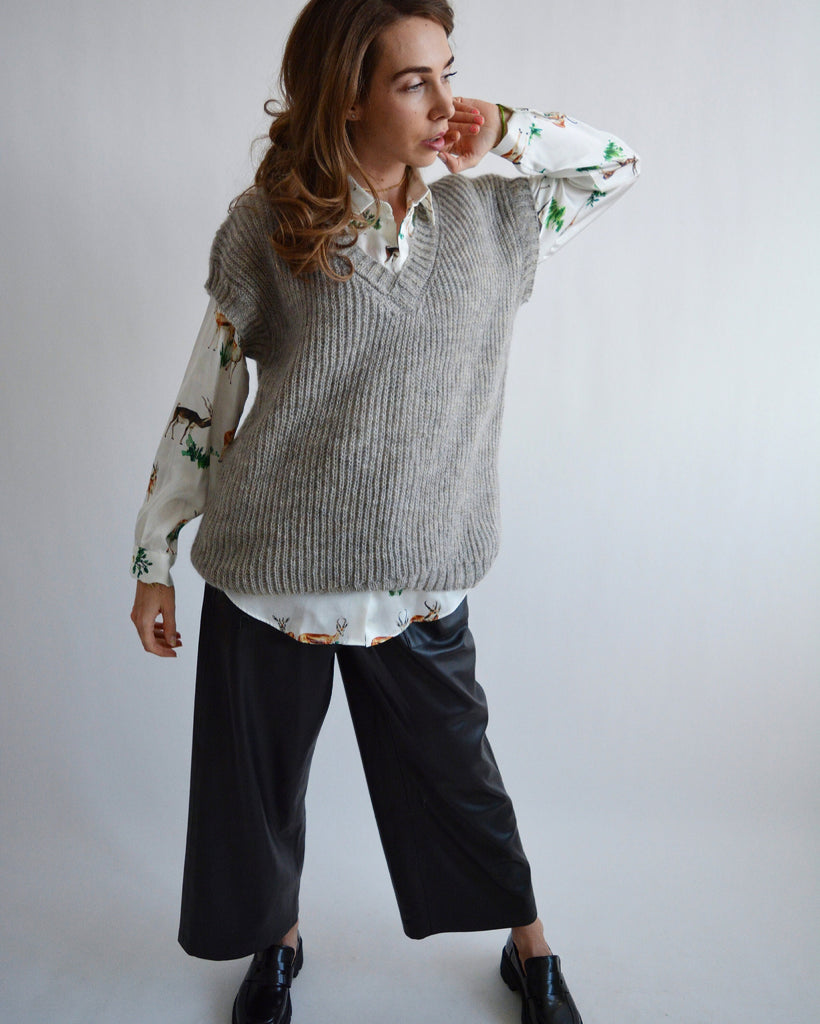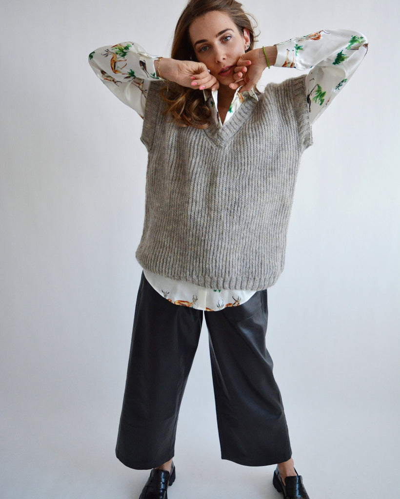 Gray mohair vest Thick wool vest Stylish knitted waistcoat Sleeveless wool sweater Unique soft waistcoat Fashion basic waistcoat top