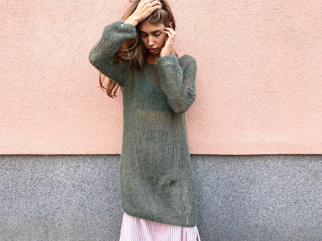 Green wool dress Mohair handknit dress Long mohair dress Khaki tunic dress Fashion tunic sweater Long light sweater Maxi chunky sweater