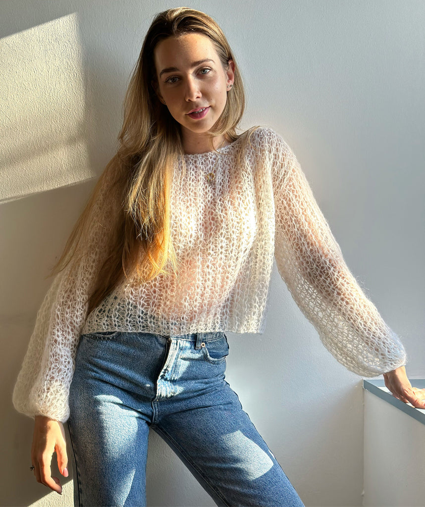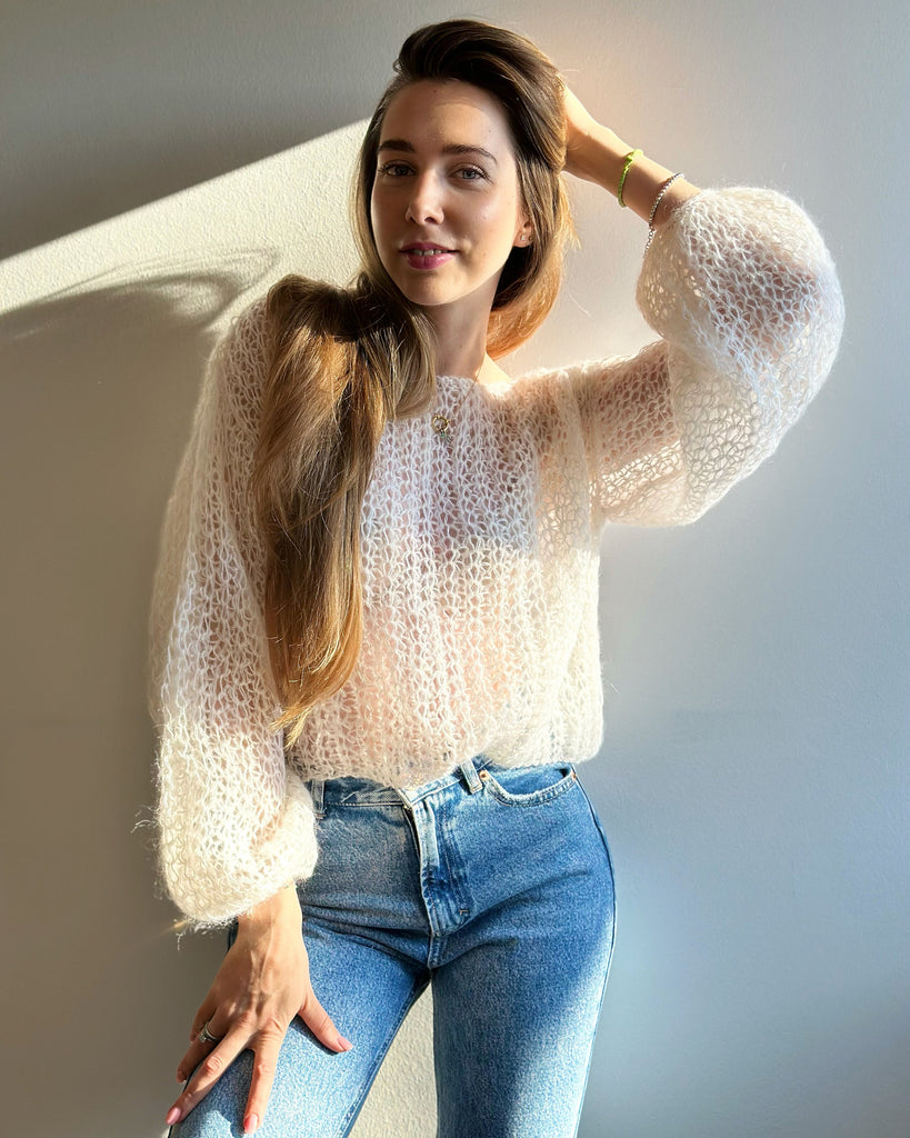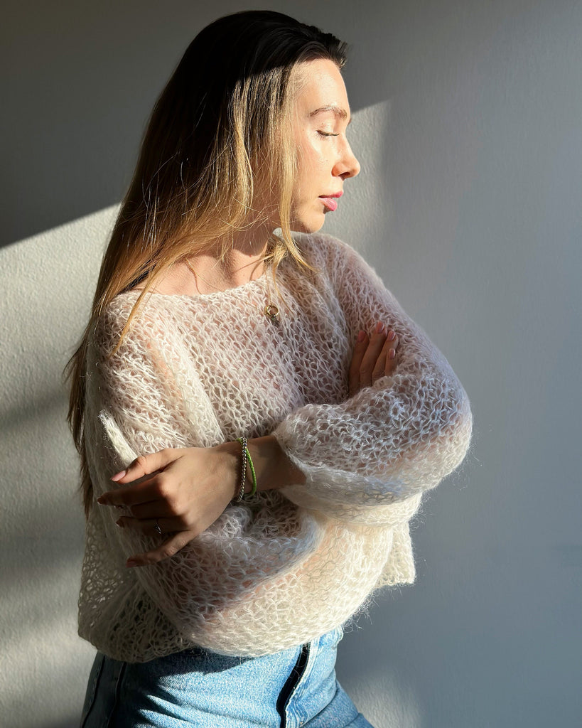 Off white mohair sweater Light ballon sleeves sweater Oversized white sweater Elegant airy sweater Mesh bohemian sweater Wedding sweater