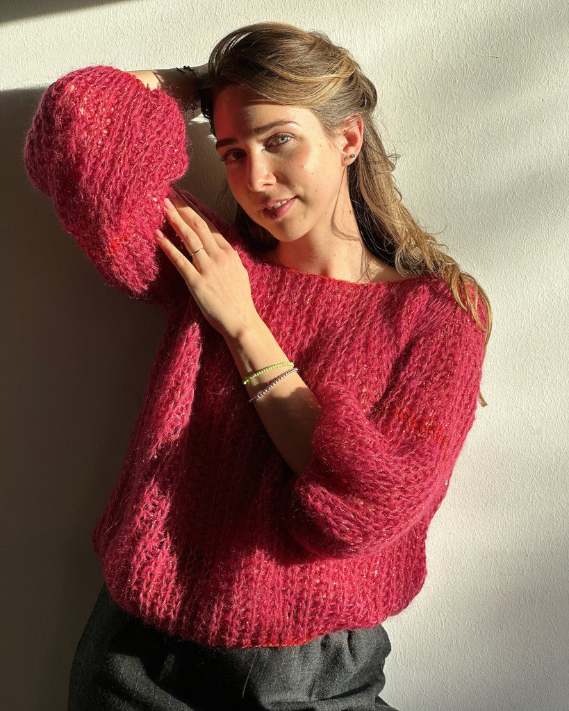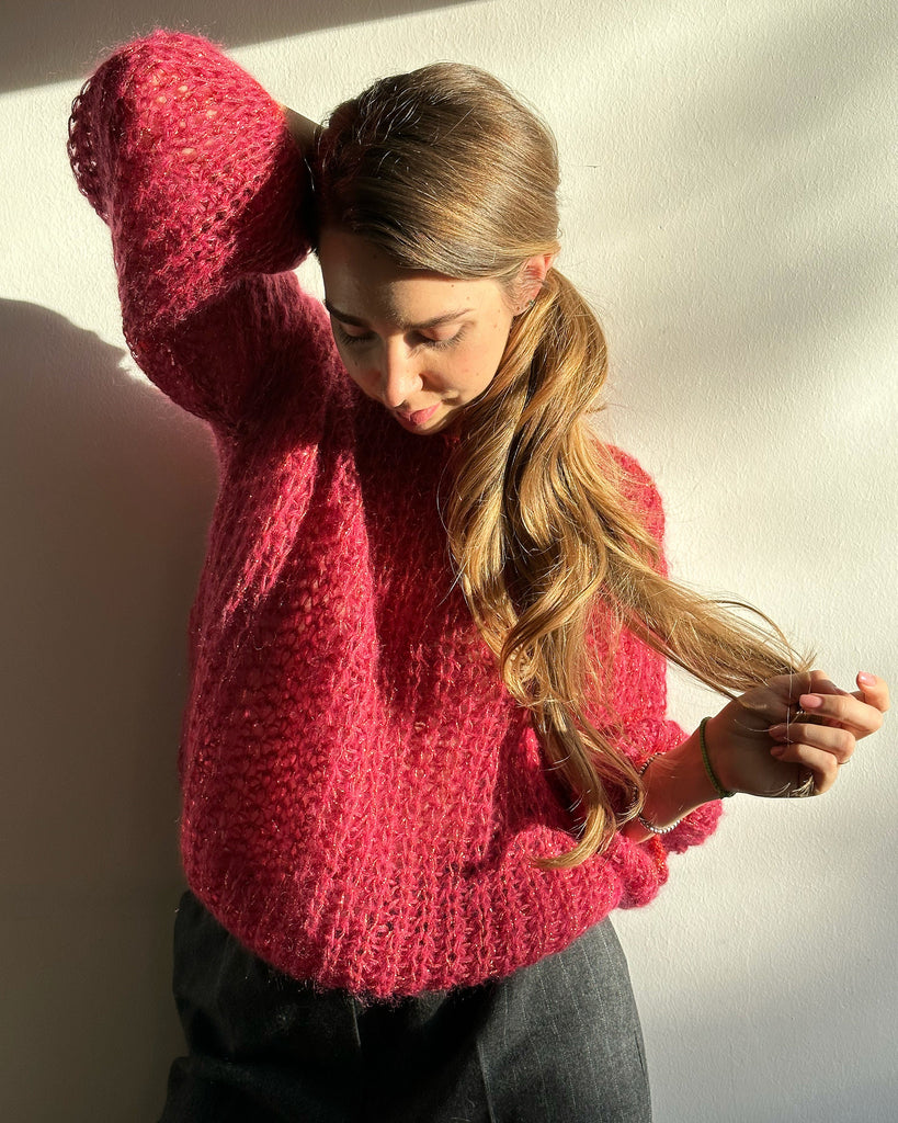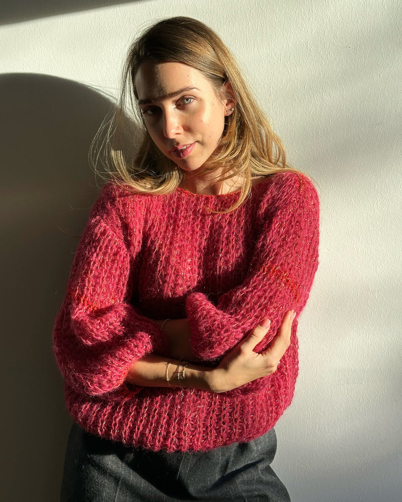 Hello, I'm the one, who won't let you down- raspberry lurex sweater.
