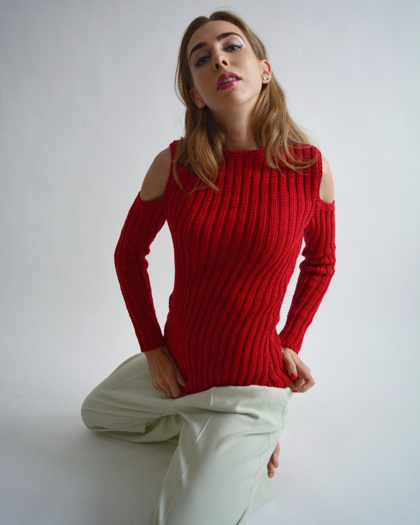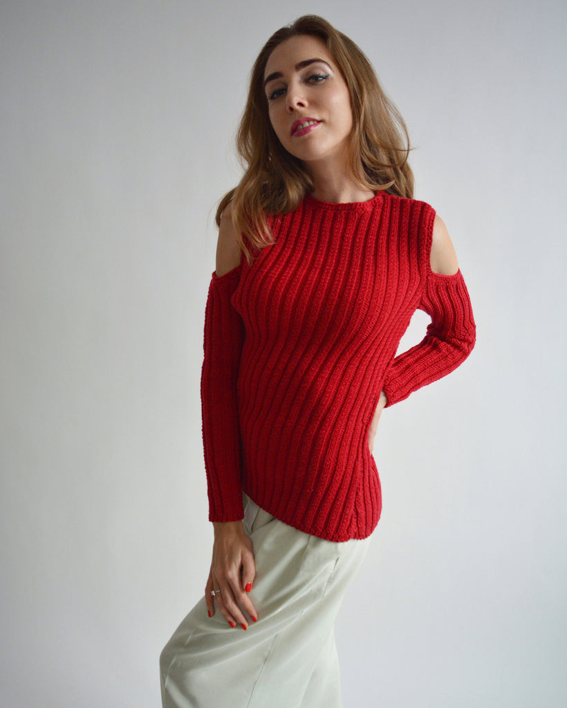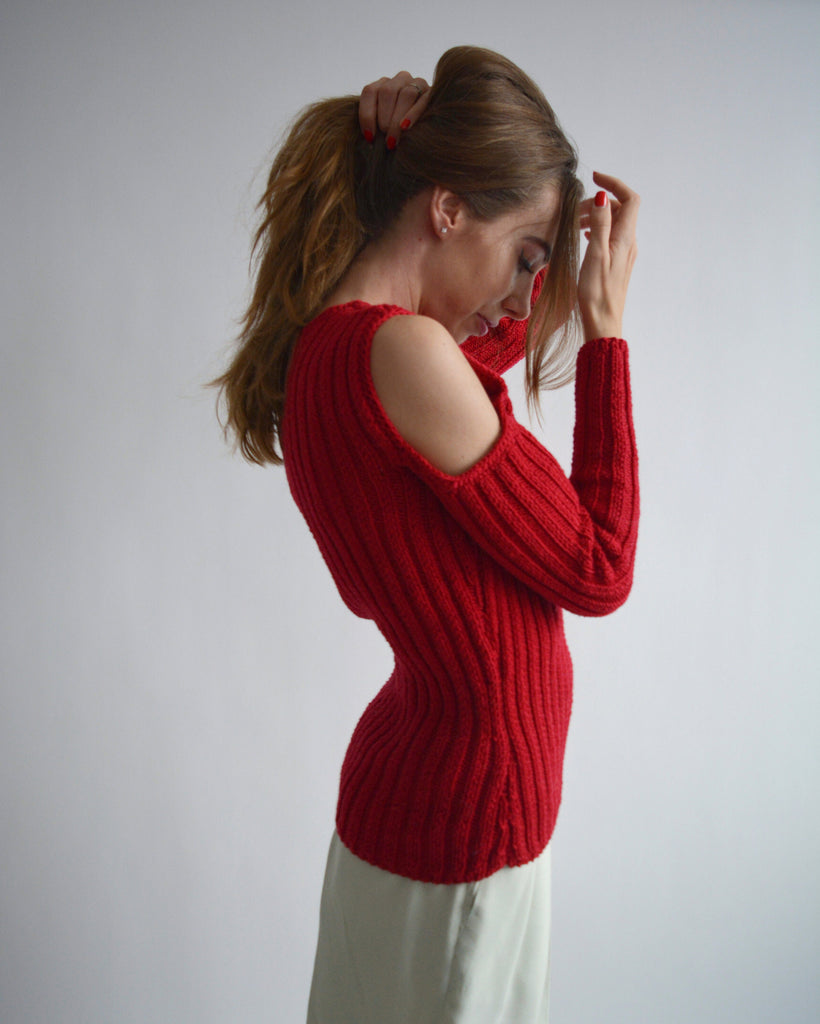 Red merino wool sweater Open shoulder sexy sweater Off shoulder warm sweater Hadnknit 100% wool sweater Luxury pure wool sweater