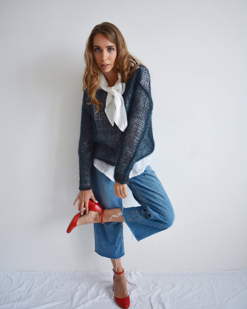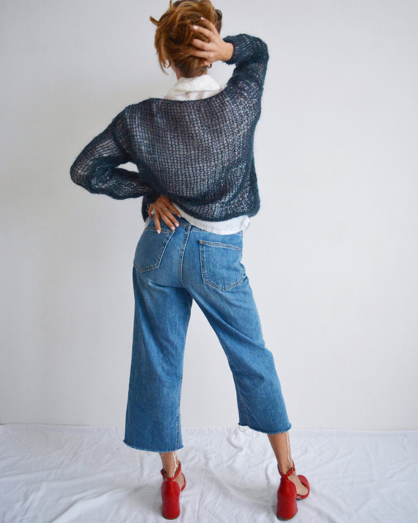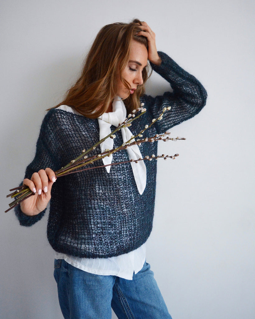 Teal mohair sweater Blue light oversized sweater Soft fluffy sweater Loose handknit sweater Bohemian basic sweater Elegant wool sweater
