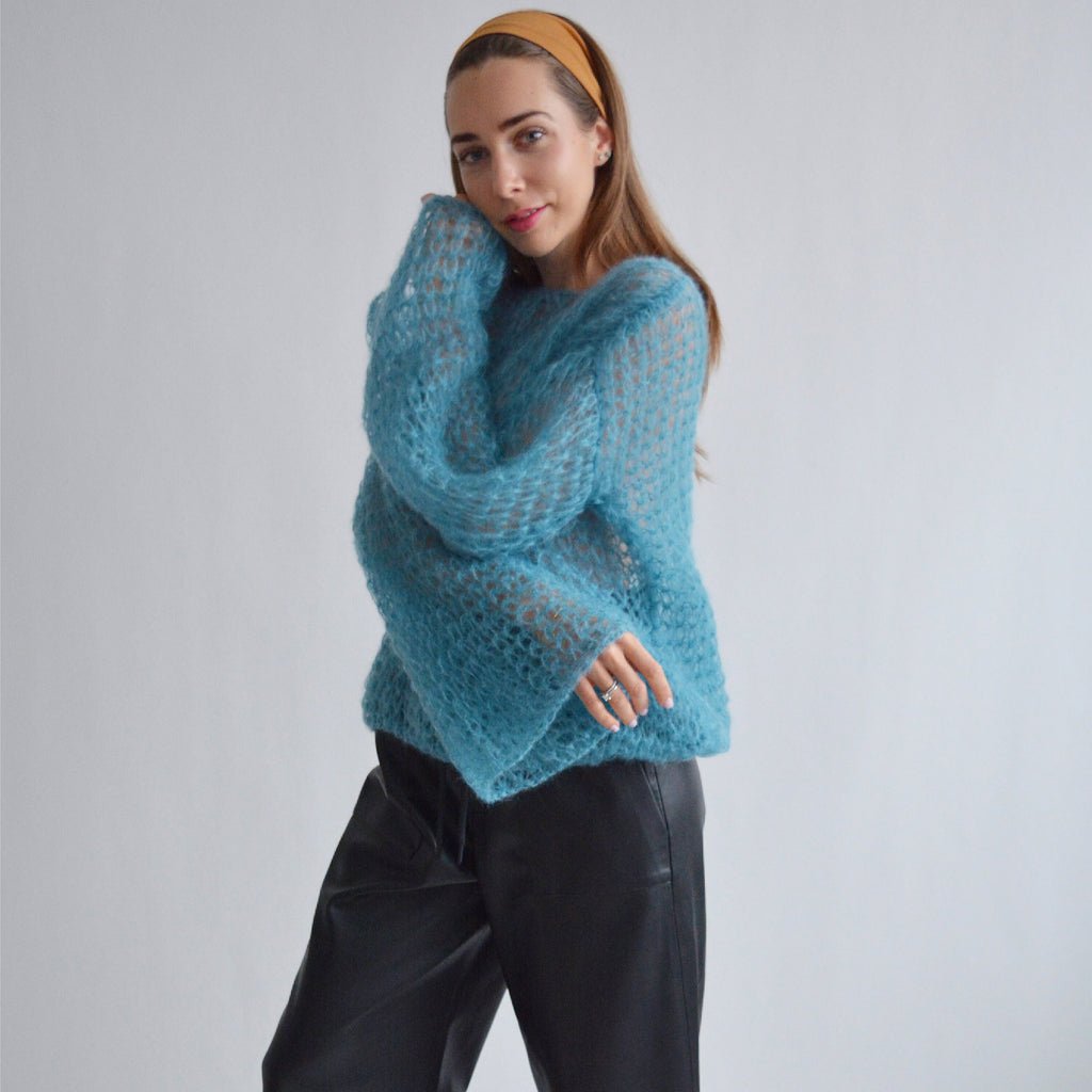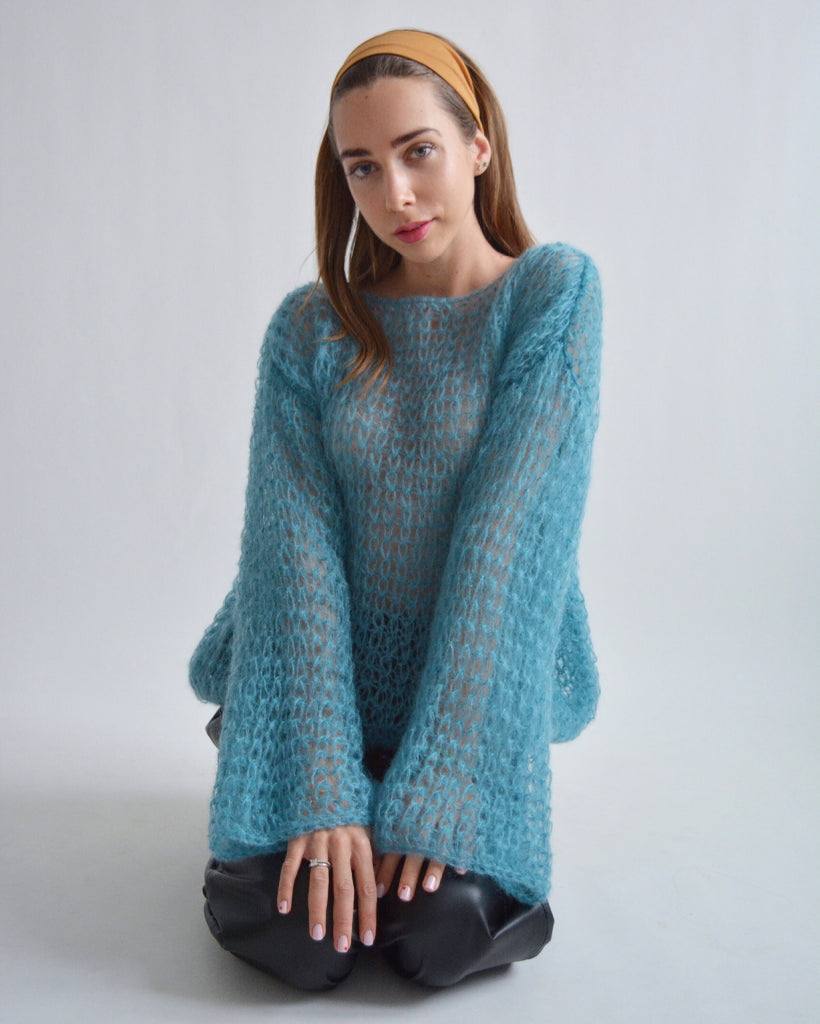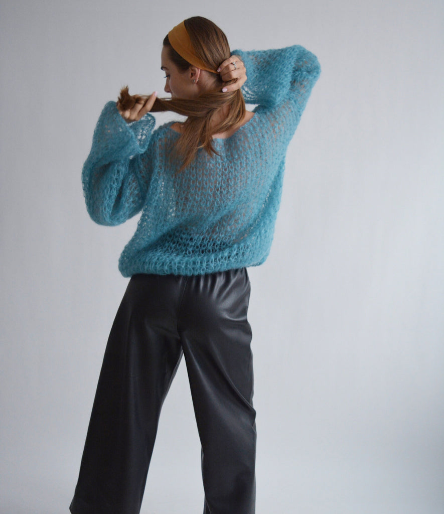 Blue light mohair sweater Soft loose sweater Handknit wool sweater Stylish basic sweater Oversized chunky sweater Sexy unique sweater