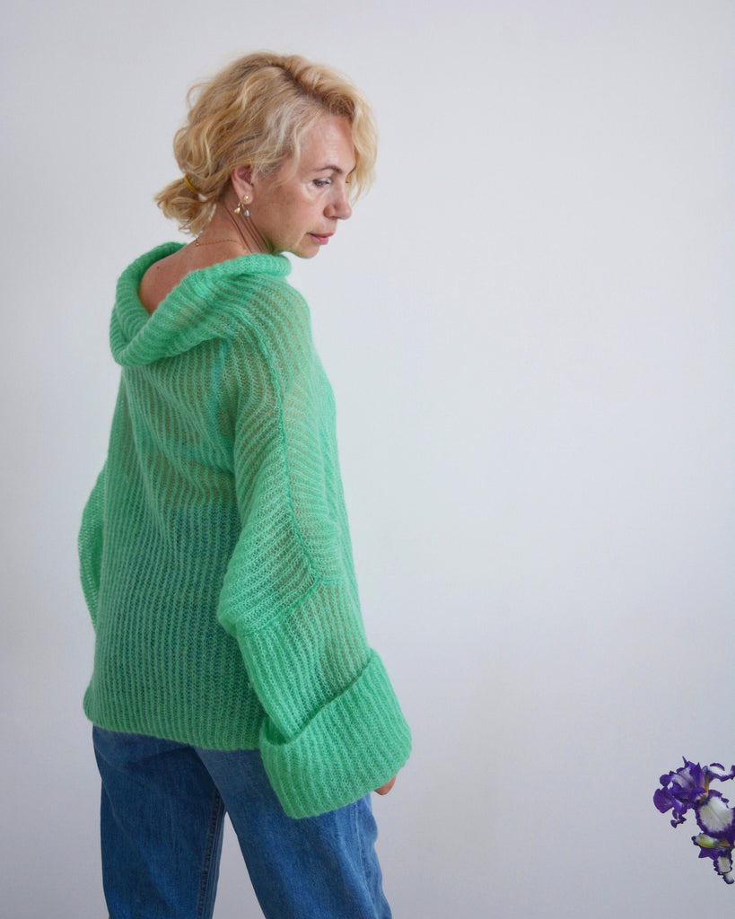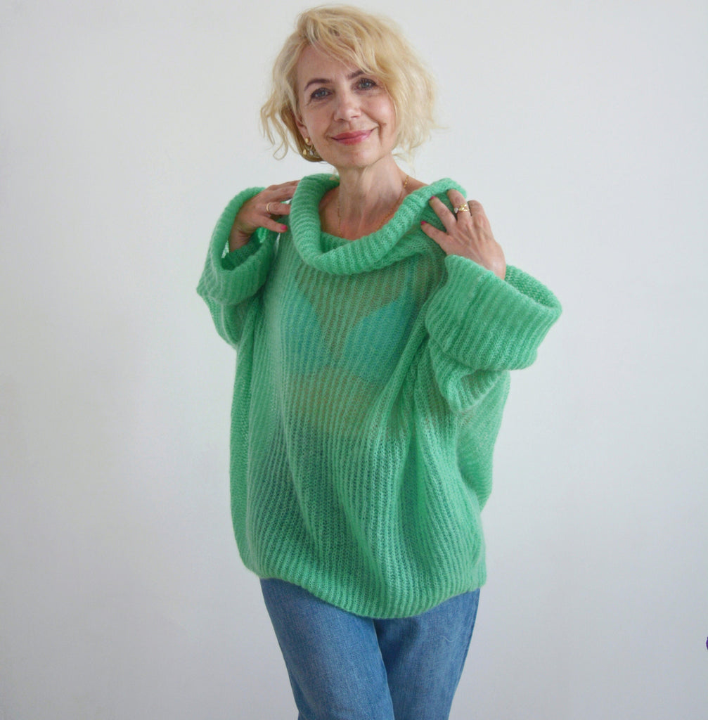 Green mohair sweater Turtleneck stylish sweater Loose big sweater Long chunky sweater Soft wool sweater Oversized fashion sweater
