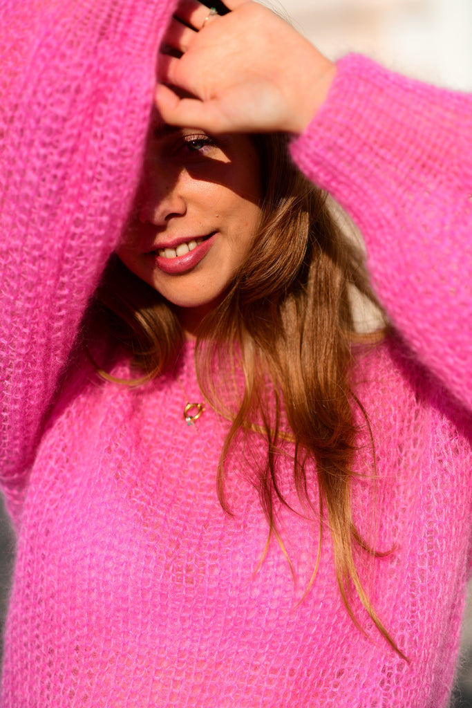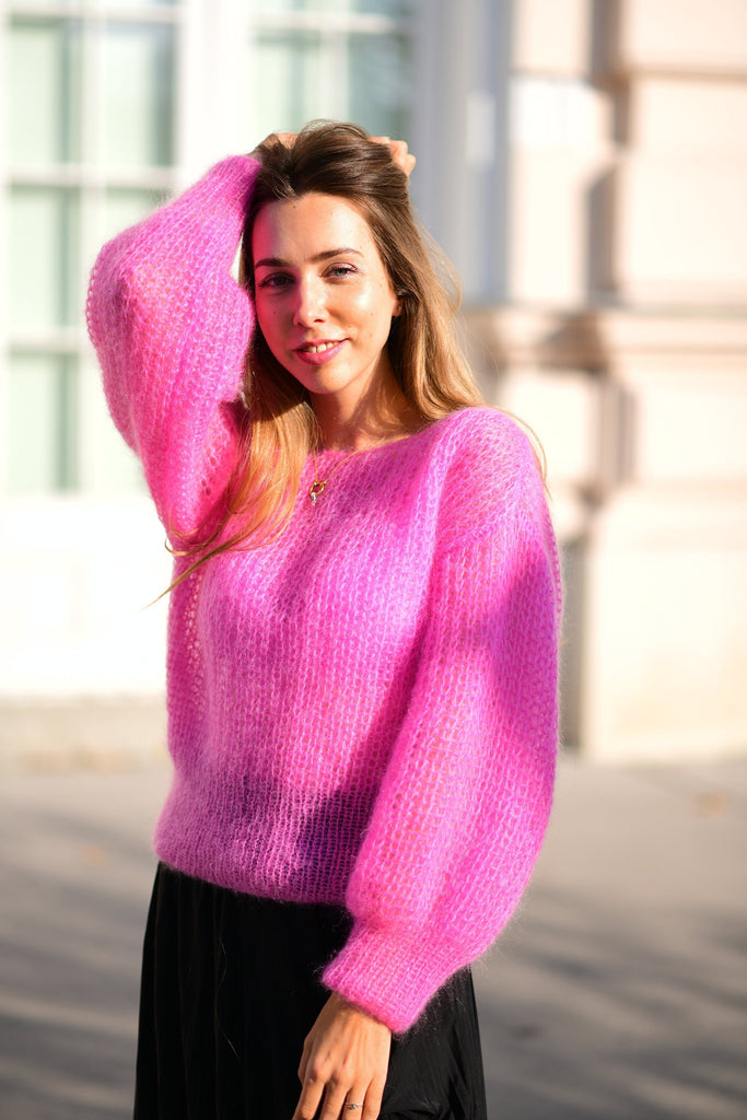 Lollipop pink mohair sweater Bright light sweater Handknit warm sweater Soft wool sweater Bell sleeve sexy sweater Fluffy bridal sweater