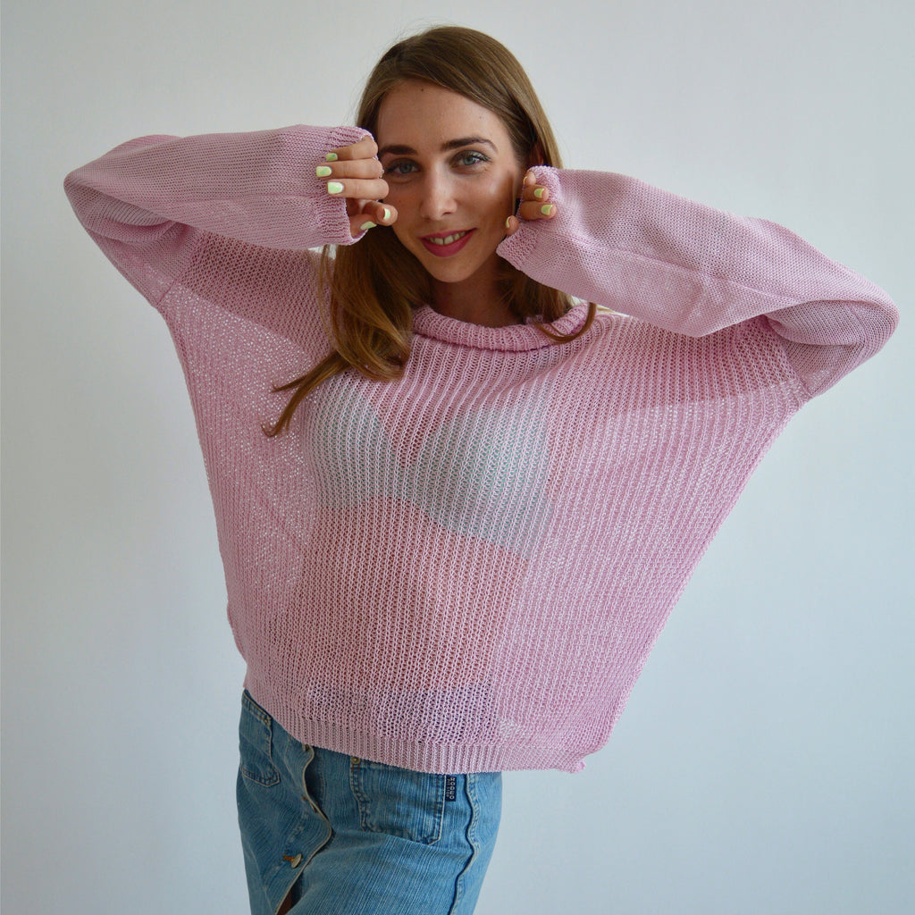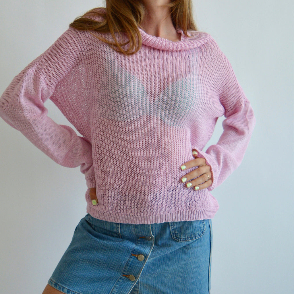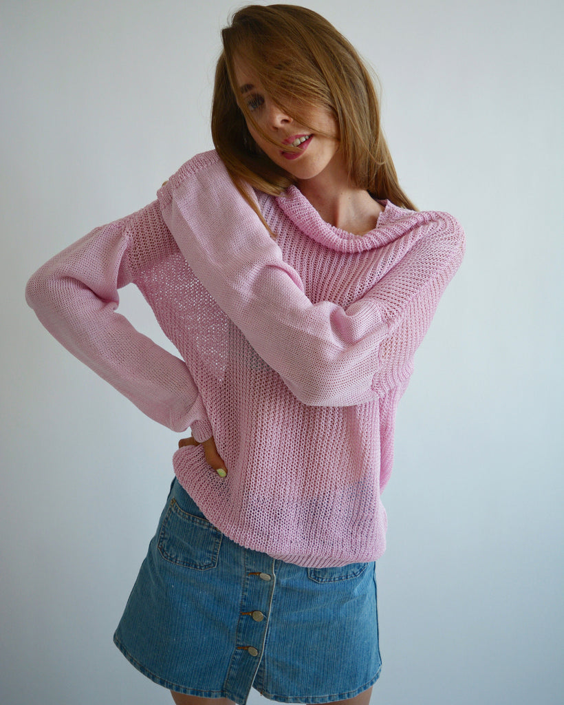 Pink cotton sweater Turtleneck light sweater Chunky sexy sweater Stylish oversized sweater Bohemian basic sweater Minimalistic knit sweater