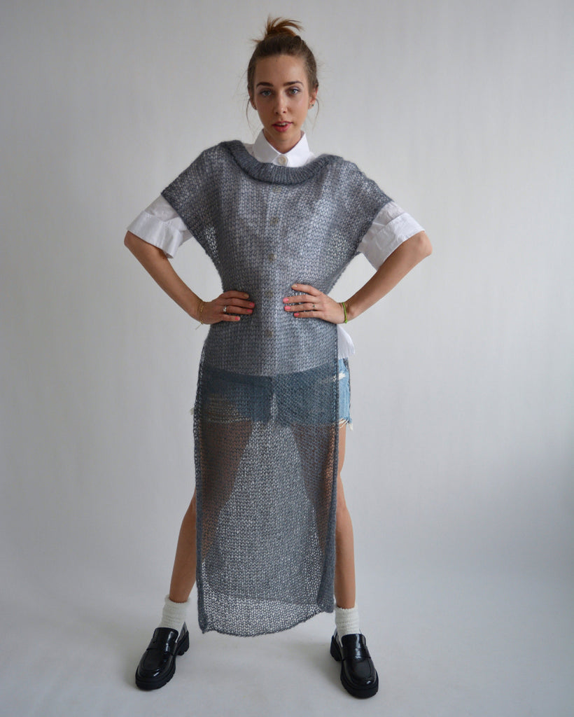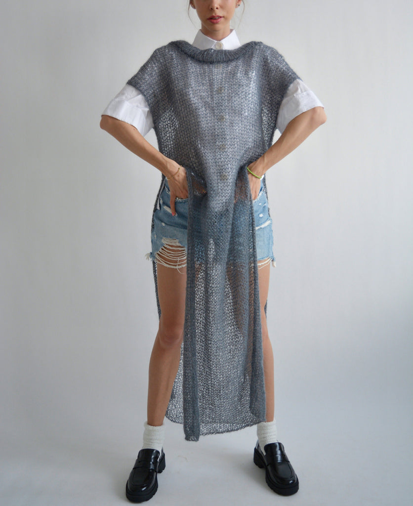 Gray sleeveless tunic Mohair long tunic Handknit sheer tunic sweater Stylish light long sweater Asymmetric unique tunic sweater Wool top