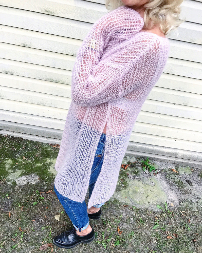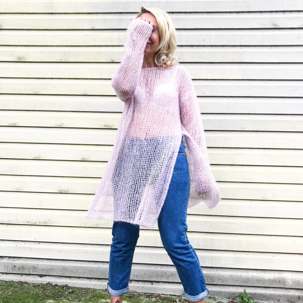 Light pink mohair asymmetric tunic dress, maxi handknit tunic, long mohair sweater, oversized bohemian tunic, knitted fashion tunic