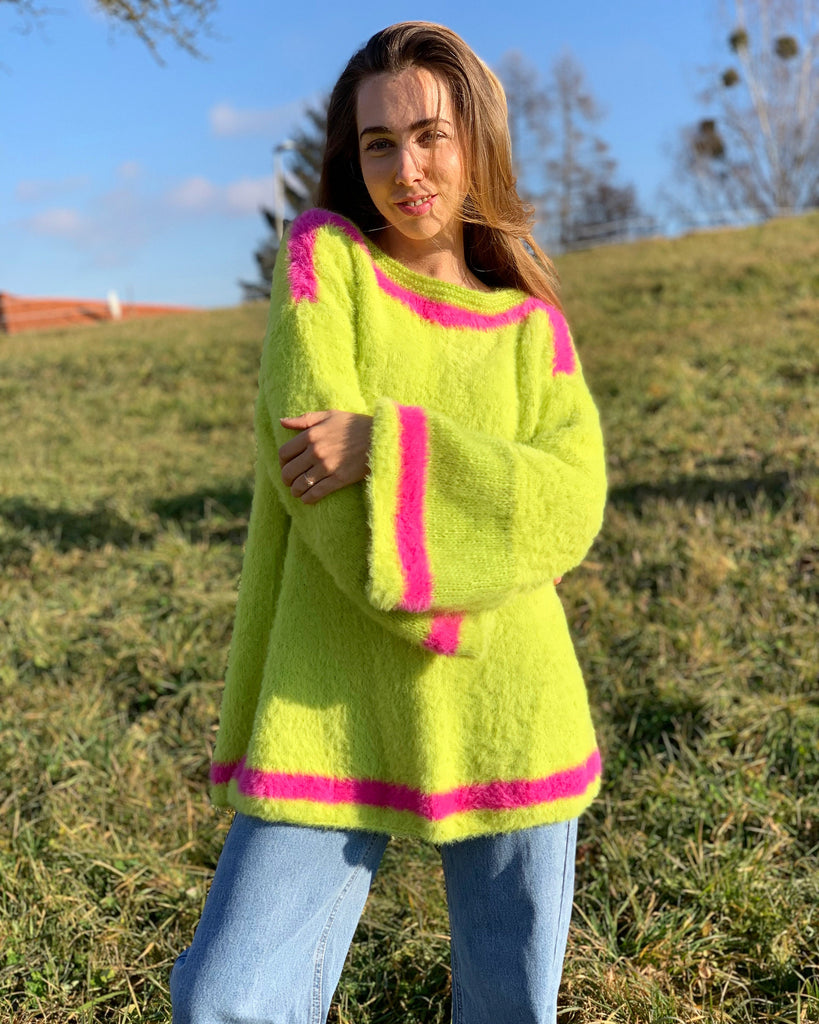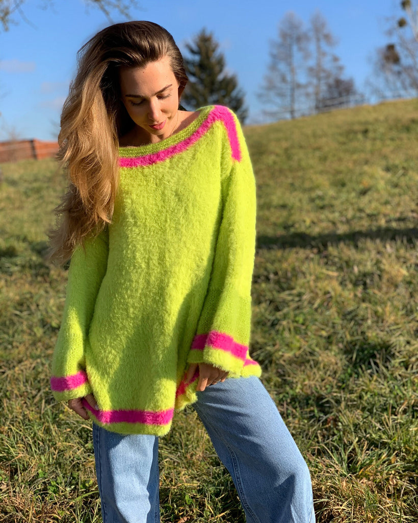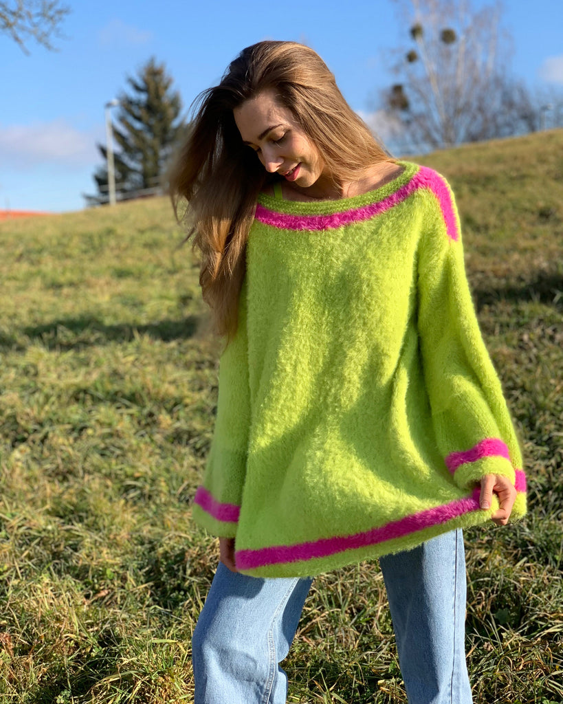 Hello, I'm the one, who won't let you down - faux fur green sweater.