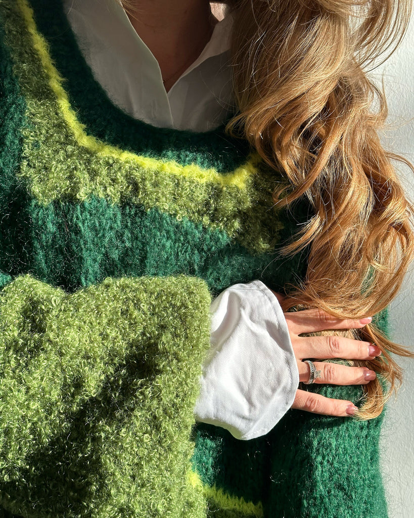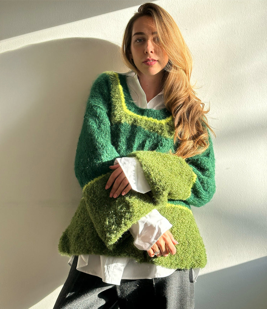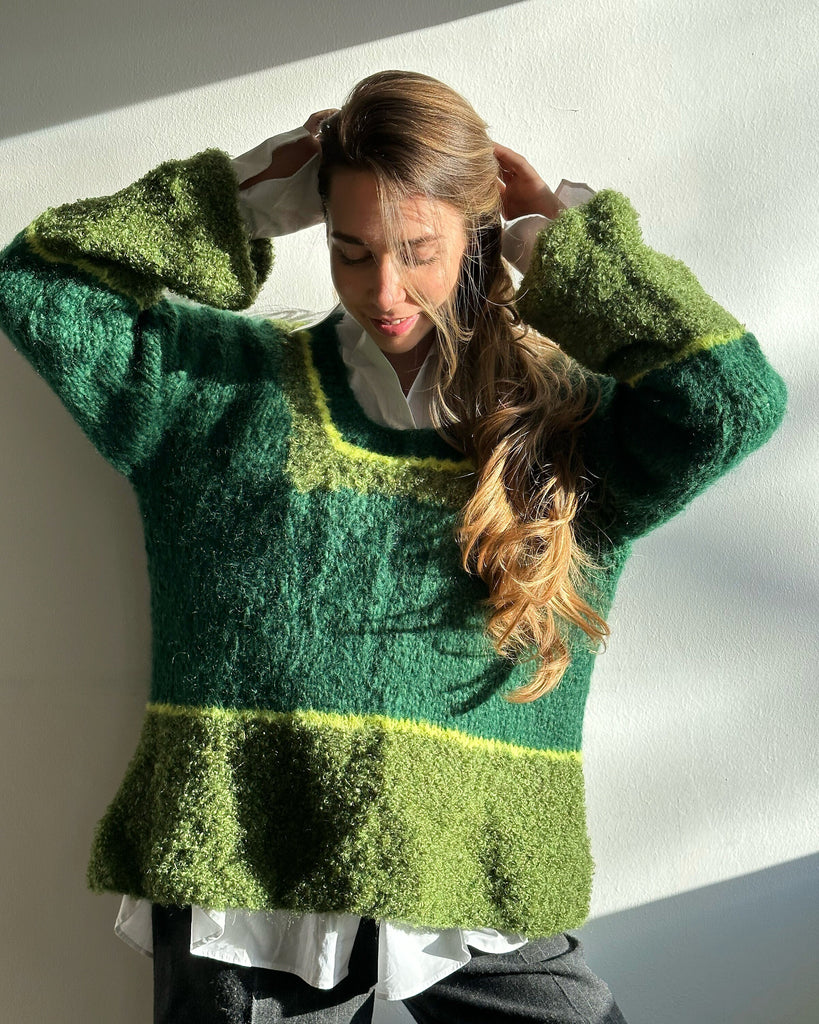 Green boucle mohair sweater Colorful bright sweater Merino square sweater Colorblock unique sweater Fashion warm sweater Chunky wool sweater