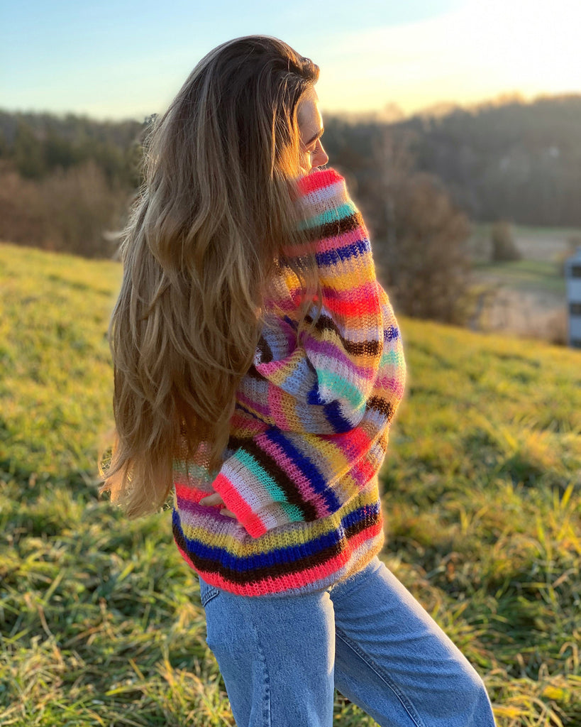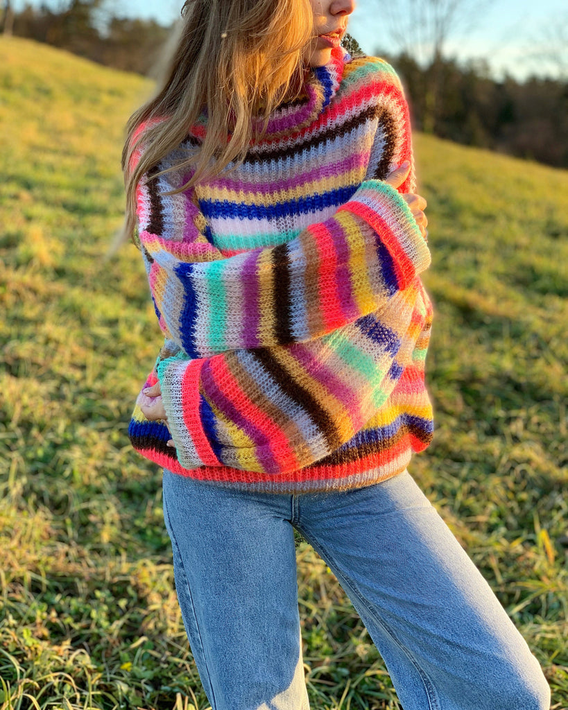 Multicolor turtleneck sweater Mohair colorful sweater Rainbow loose sweater Chunky wool sweater Slouchy knitted sweater Fashion sexy sweater