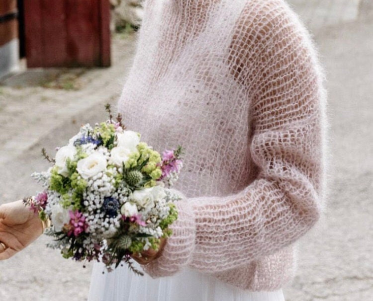 Bridal white sweater Wedding mohair sweater Light wedding cover up Knitted bridal wrap Wedding wool shrug Bridesmaid chic sweater