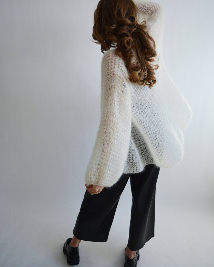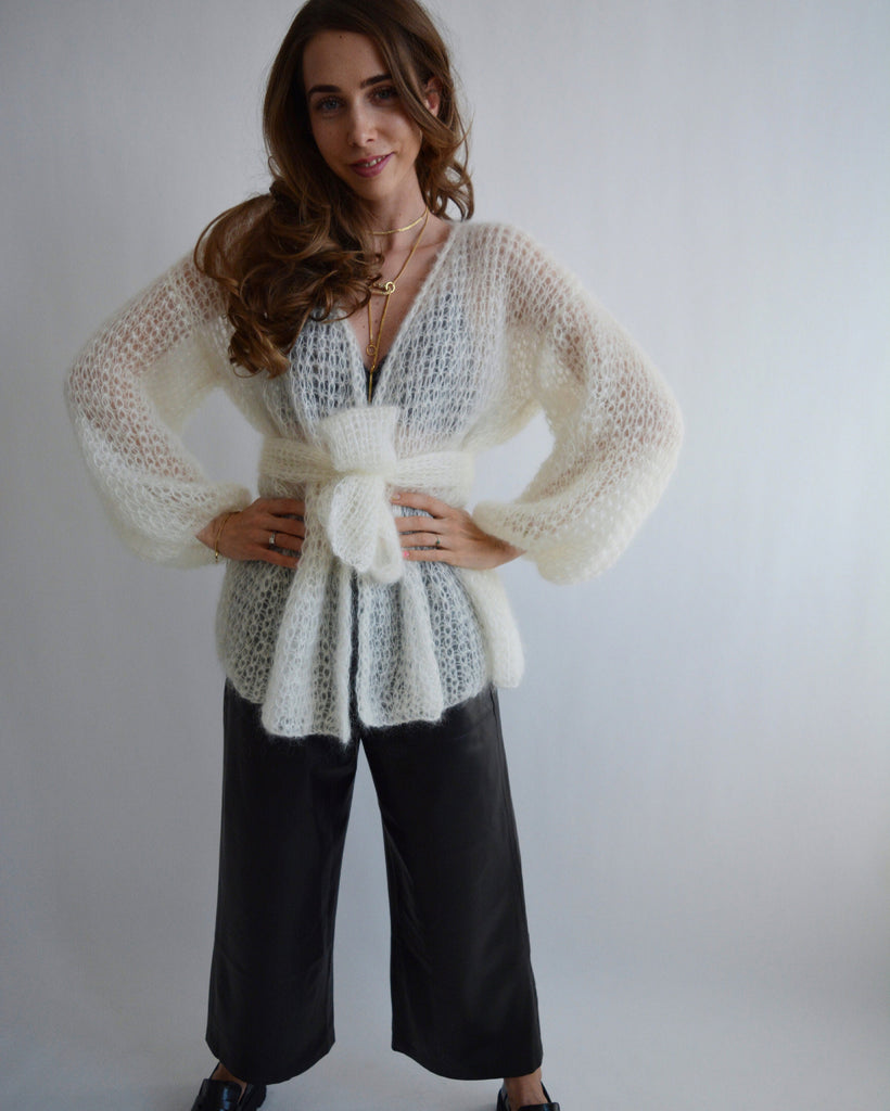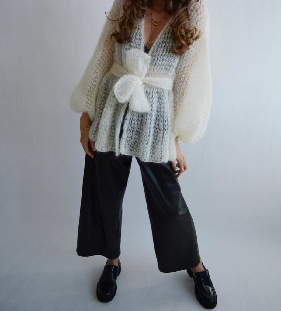 Ivory mohair cardigan Belted soft cardigan Short cardigan with bow Cropped oversized cardigan Sexy wrap cardigan Light handknit cardigan