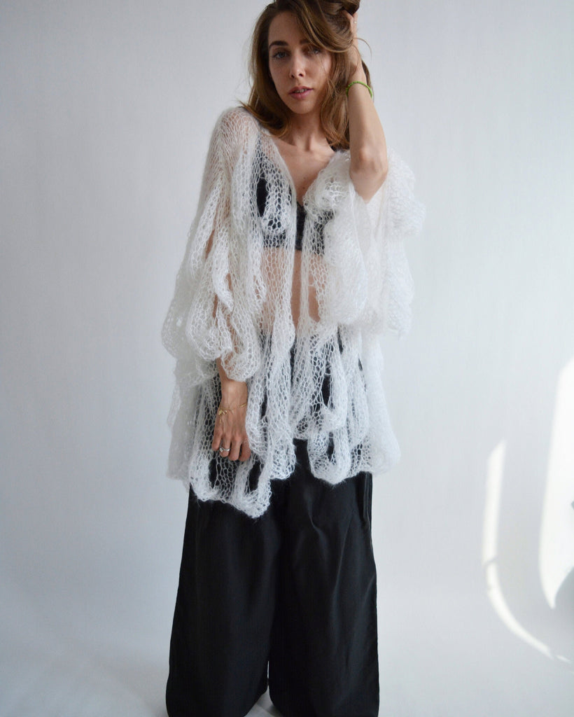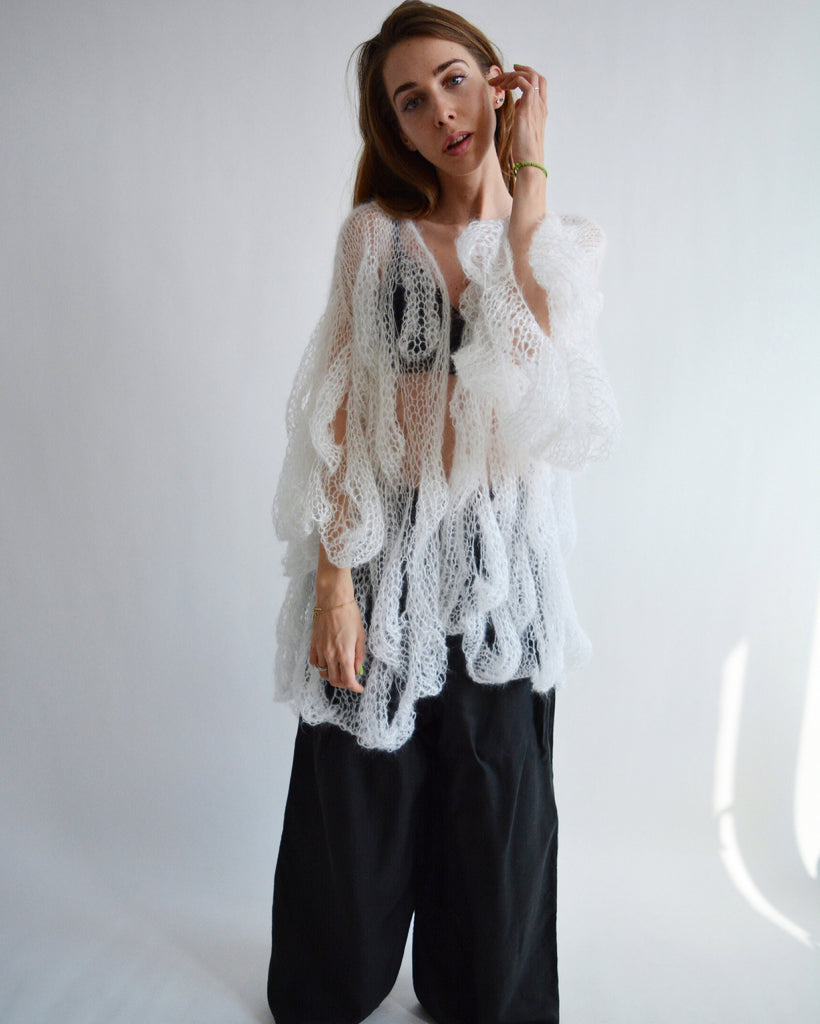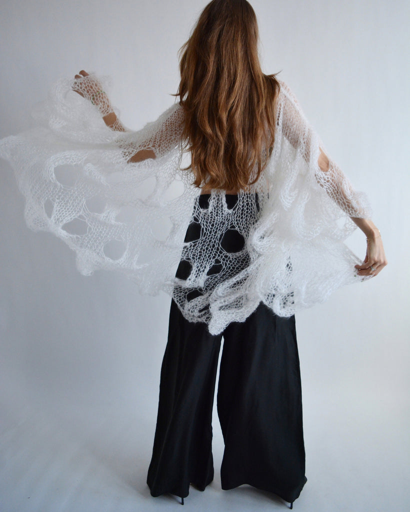 White silk mohair cardigan Wedding extravagant cardigan Bridal luxury cardigan Handknit fashion shrug Chunky knitted cover Cozy shawl