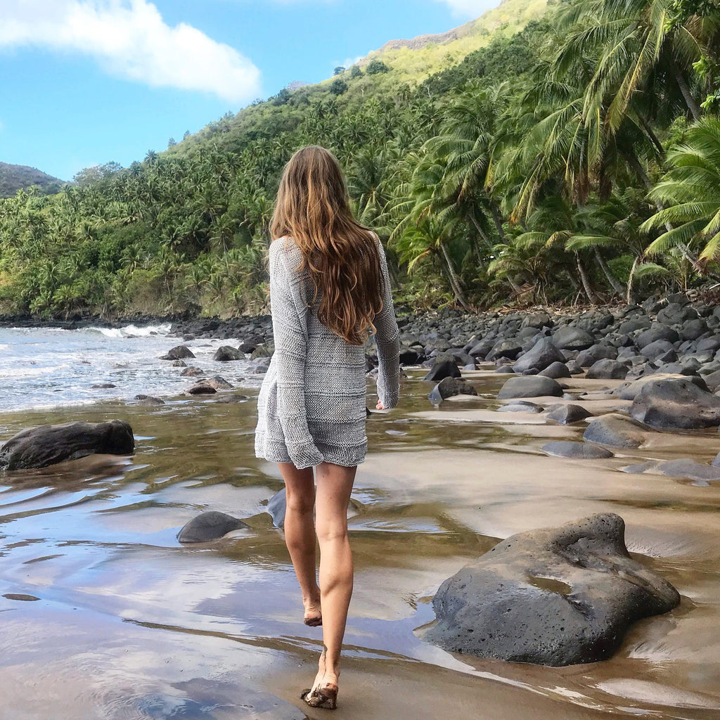 Beach crochet dress Gray cotton tunic Tunic beach cover up Beachwear dress Beach outfit Tropical dress Sexy beach dress Beach boho cover