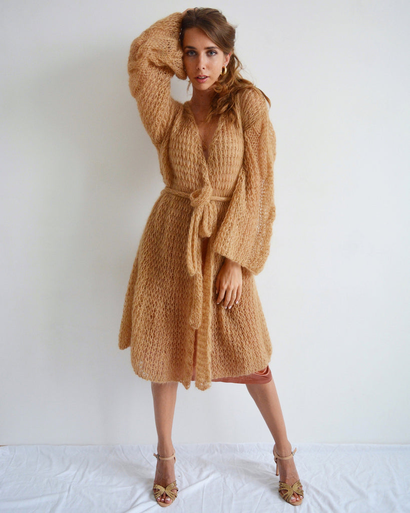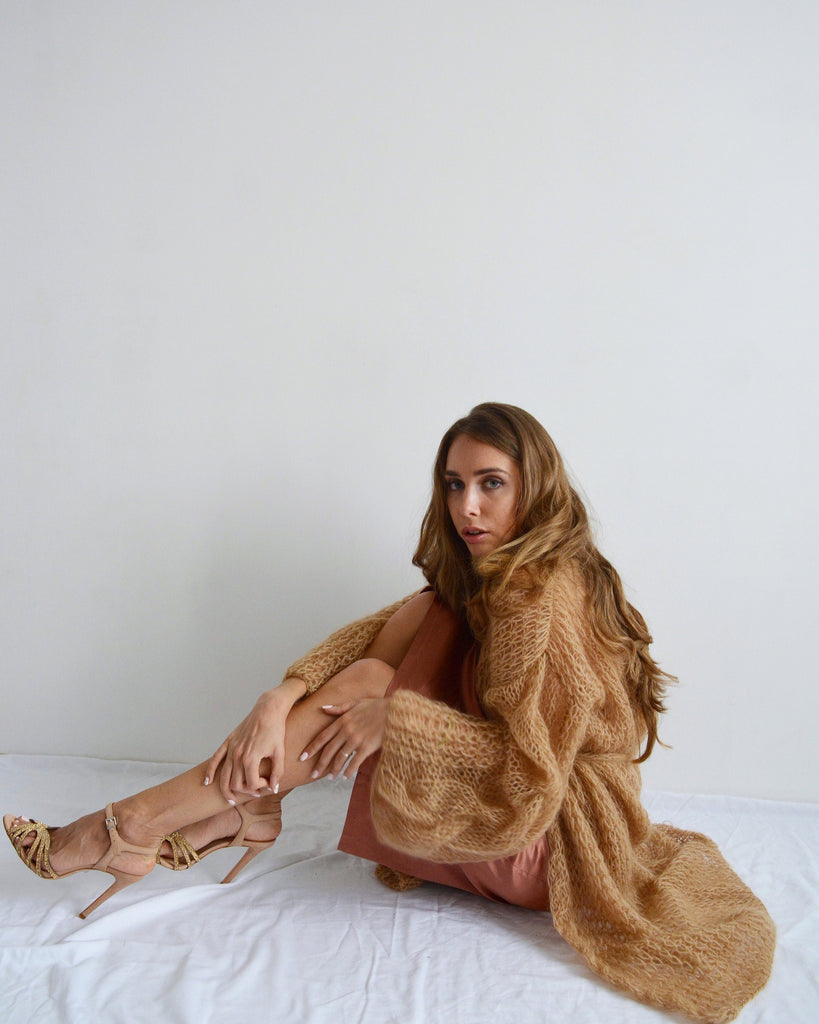 Beige alpaca wrap cardigan, Camel mohair long cardigan, Kimono handknit cardigan,Light loose knit cardigan, Bridal cover up