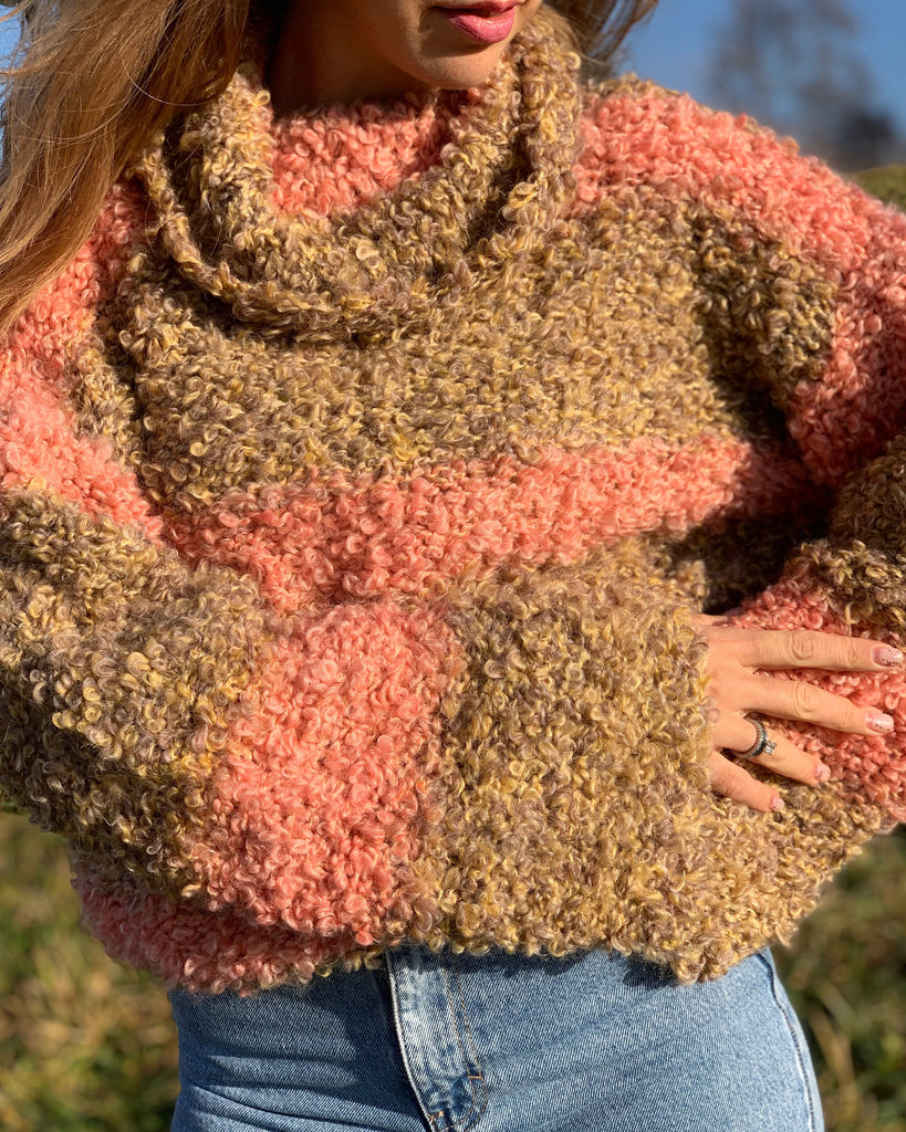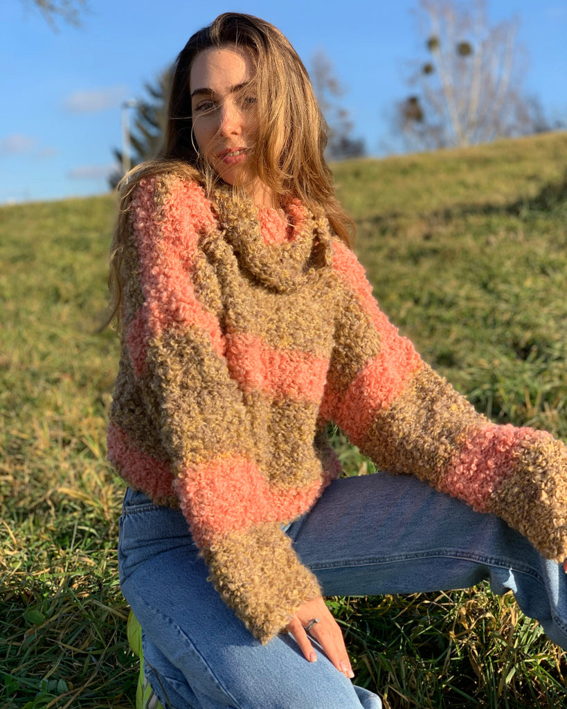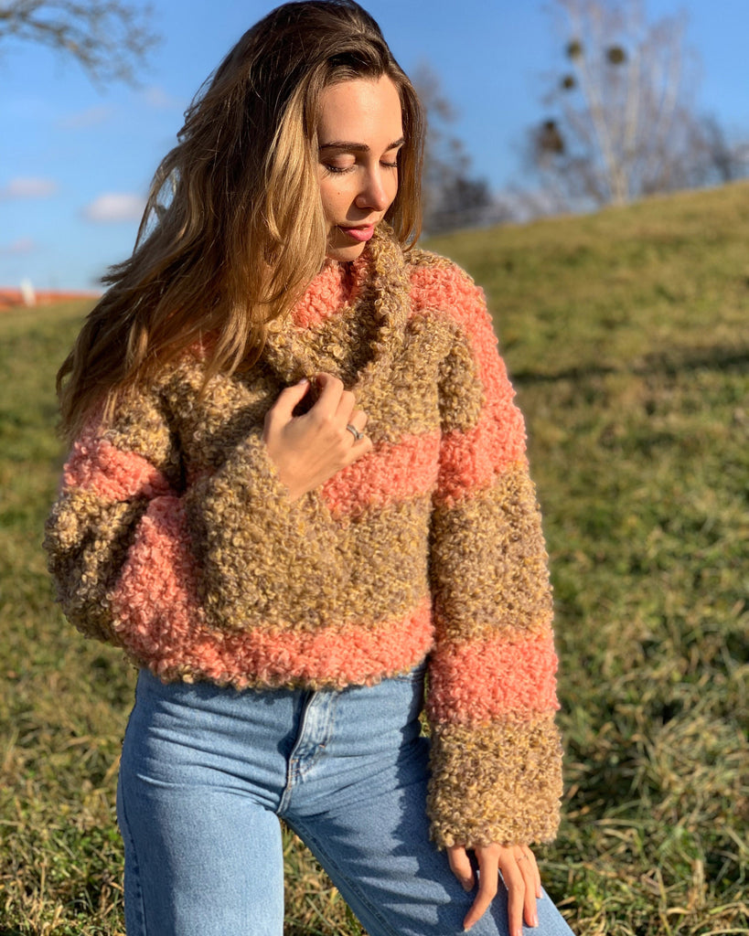 Beige boucle sweater Mohair rainbow sweater Cropped ombre sweater Sexy warm sweater Short handknit sweater Turtleneck multicolor sweater