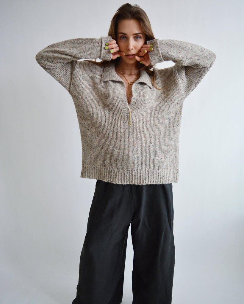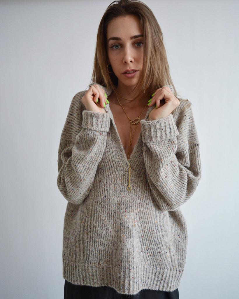 Beige gray polo shirt Knitted alpaca polo Polo style sweater Collared chunky sweater Tweed retro sweater Merino wool shirt Oversized sweater