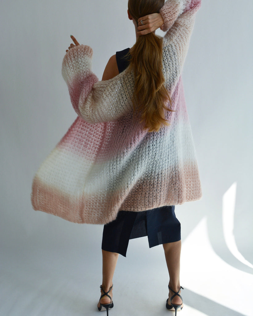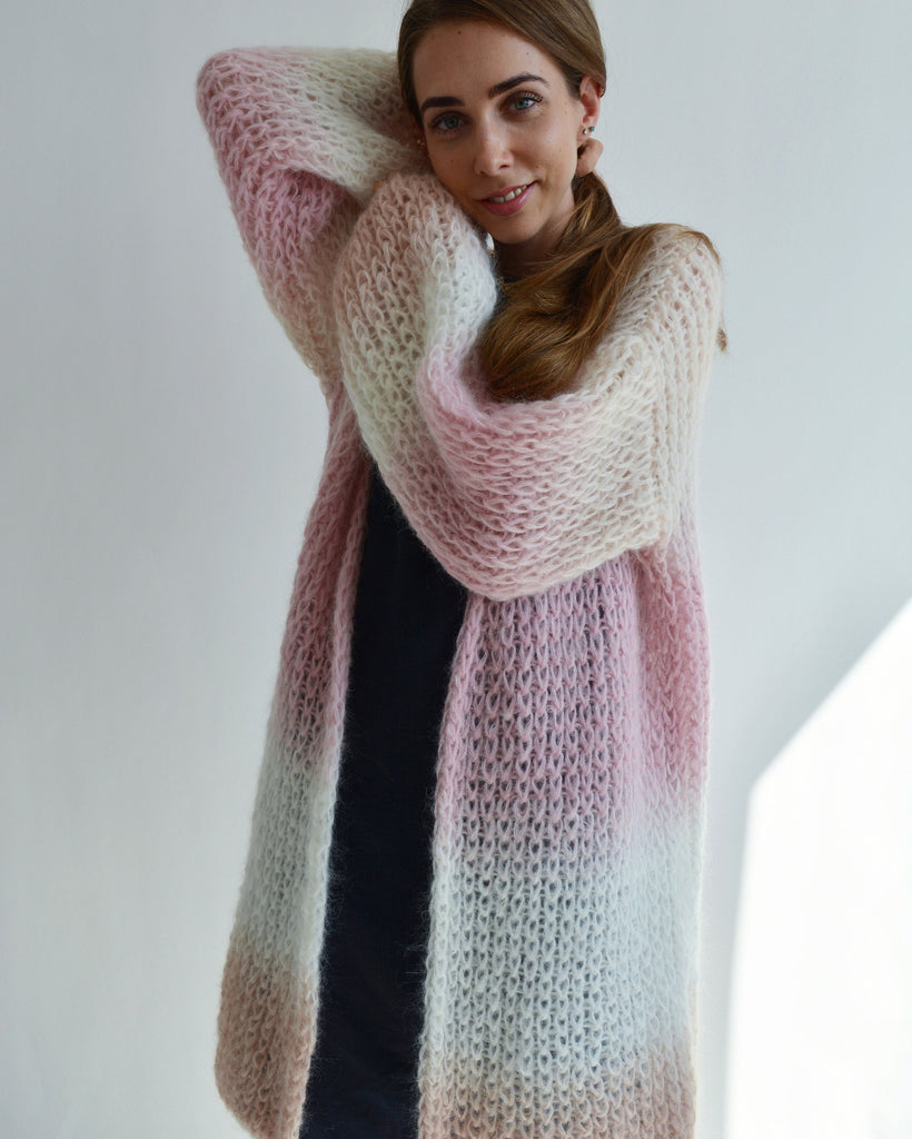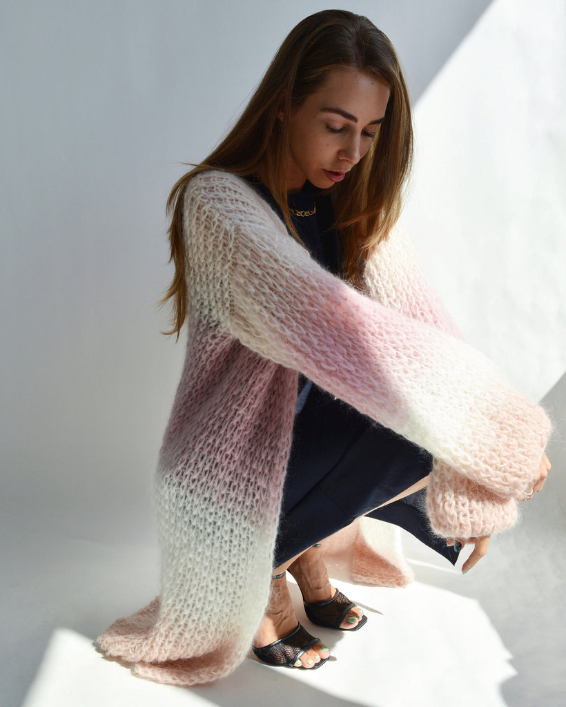 Beige ombre cardigan Mohair thick cardigan Pale pink long cardigan Handknit chic cardigan Warm oversized knitted coat Bridal chunky cardigan