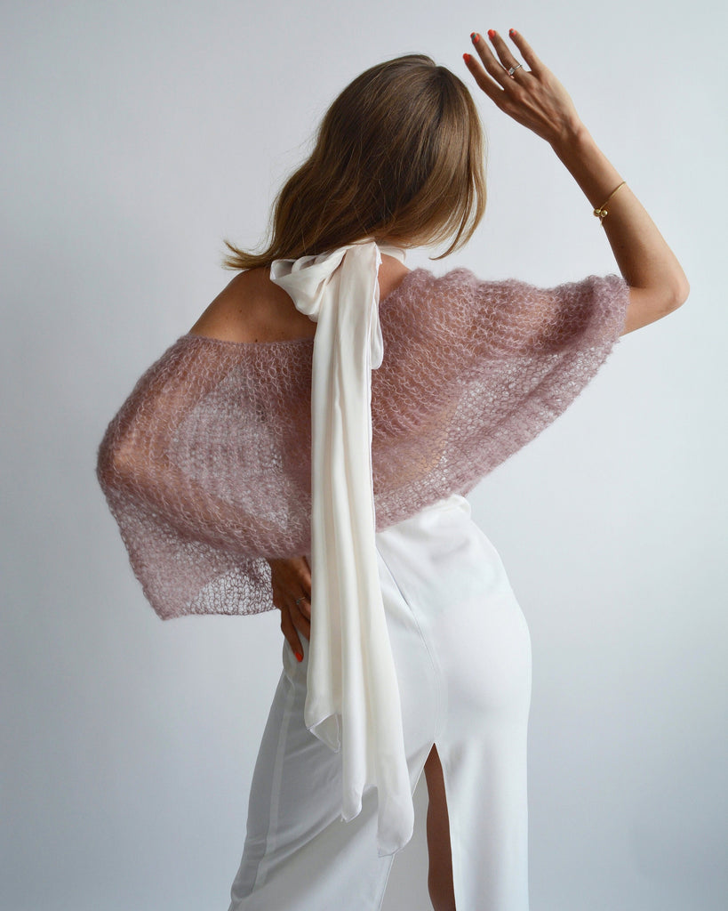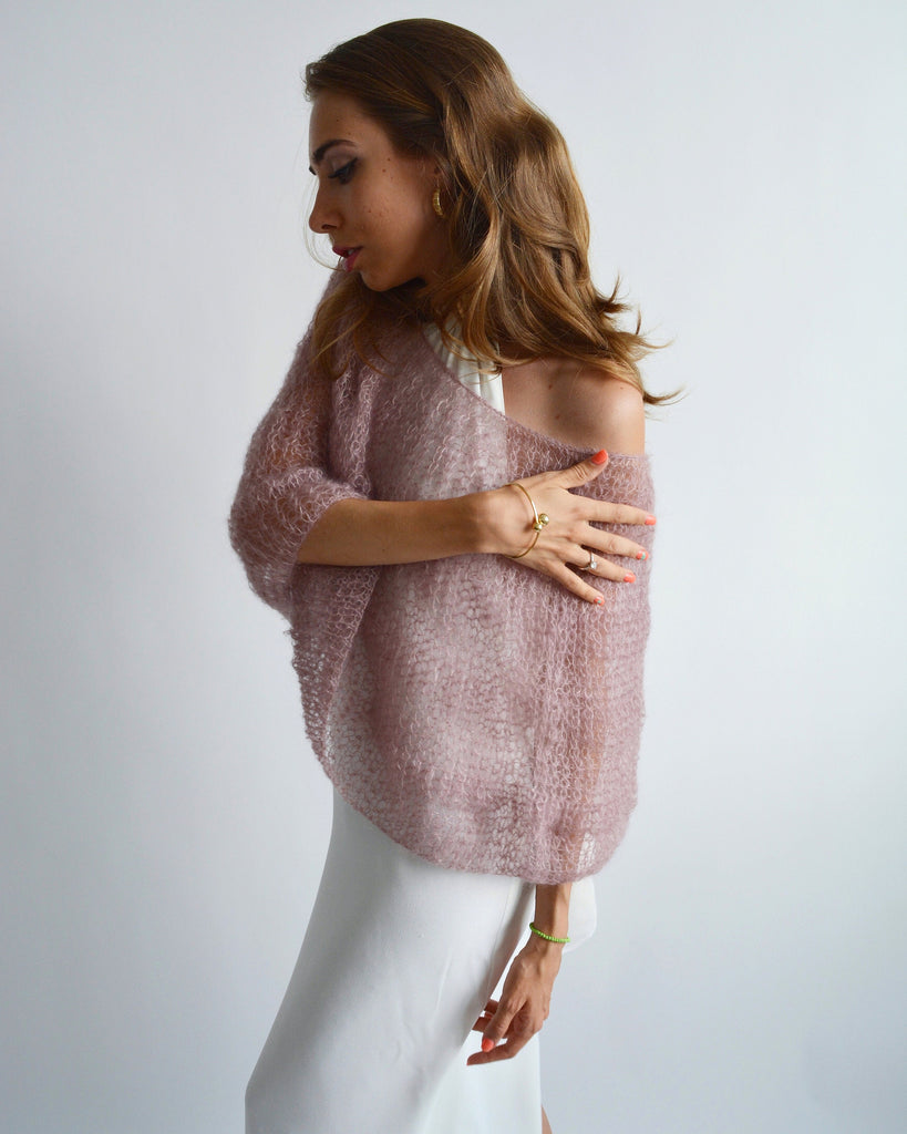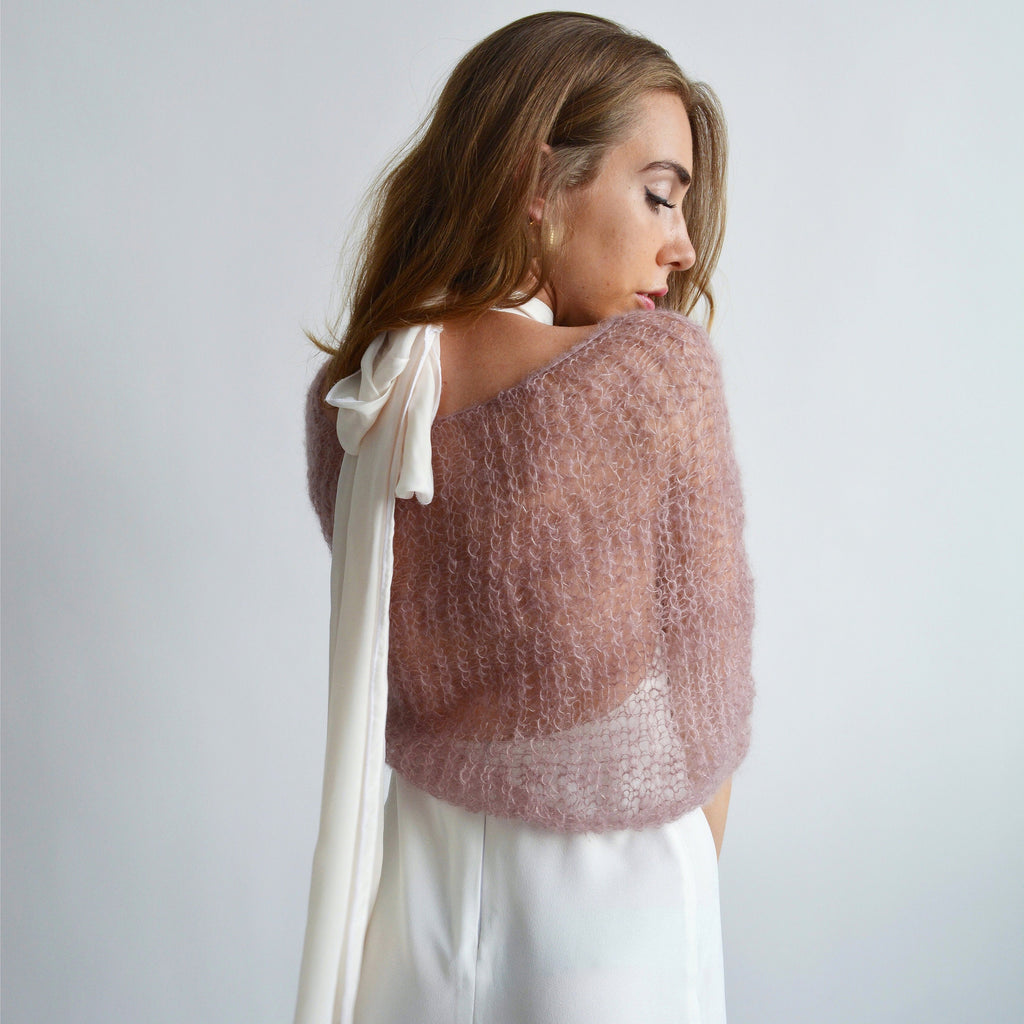 Beige rose silk mohair bridal shawl Beige wedding shrug Evening knit bolero Dress light cover up Bridesmaid cape Bridesmaid knit jacket