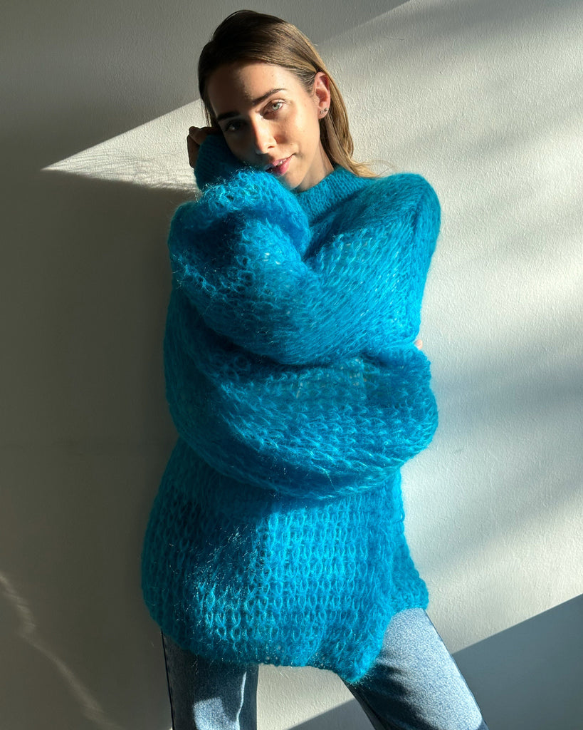 Hello, I'm the one, who won't let you down - blue mohair cardigan.