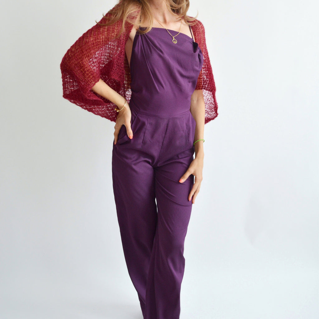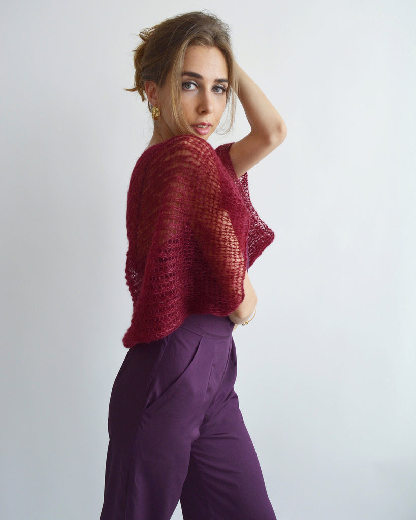 Burgundy silk mohair shrug Bridal light shawl Wedding knit cover up Red wine knit bolero Dress cover up Bridesmaid sexy cape