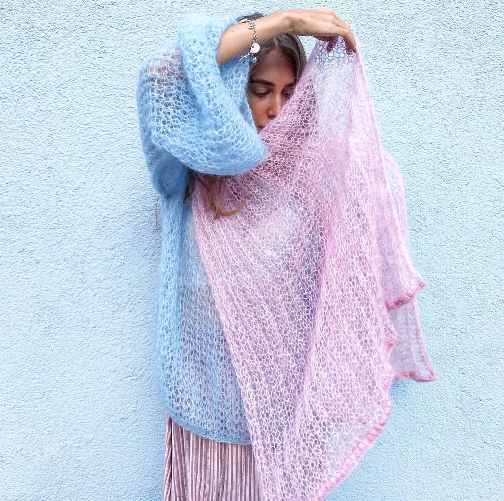 Pink mohair scarf Crochet handknit stole Light mesh wrap Unique wool shawl Evening soft shawl Bridal knit cover up Wedding wrap