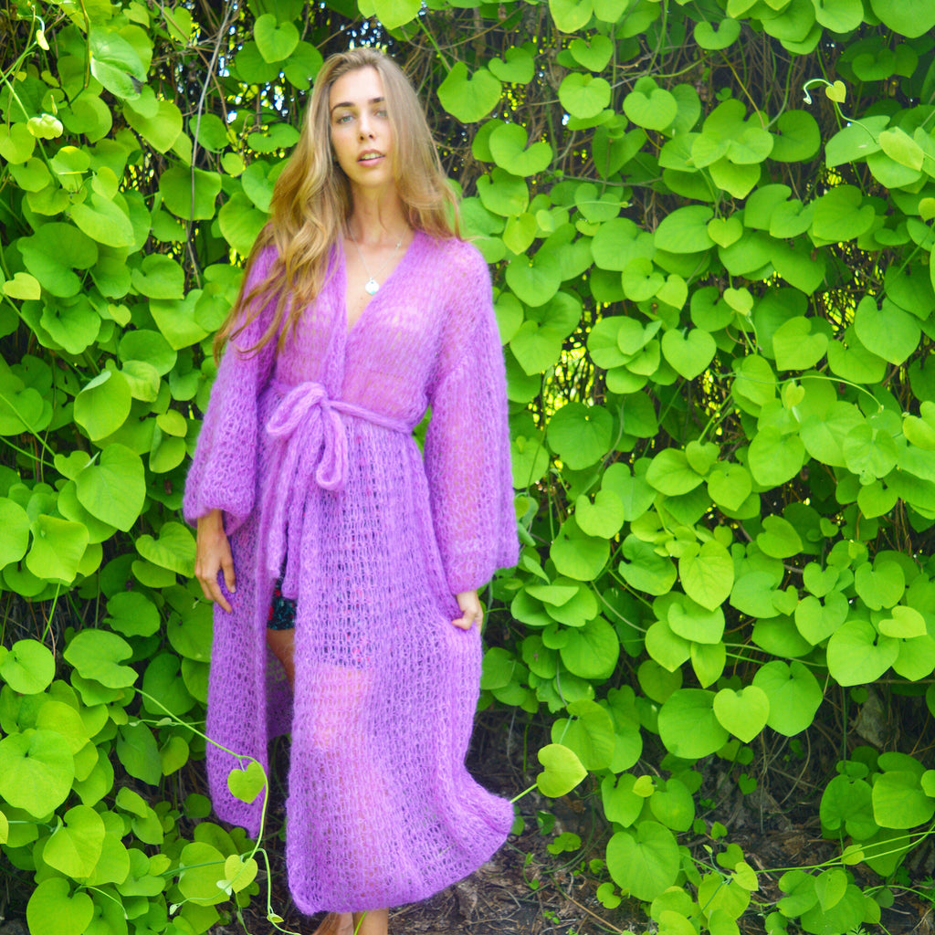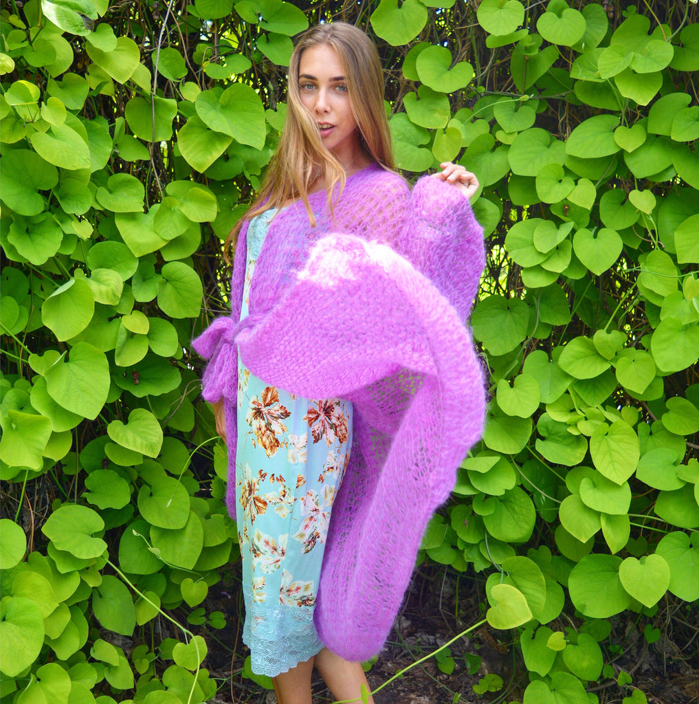 Purple mohair cardigan, Light long cardigan, Kimono knit cardigan, Wrap cardigan, Autumn cardigan, Bohemian chunky cardigan, Belted cardigan