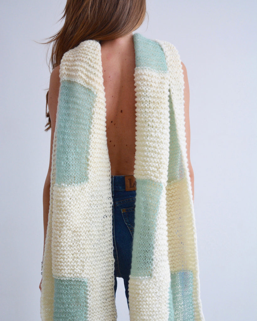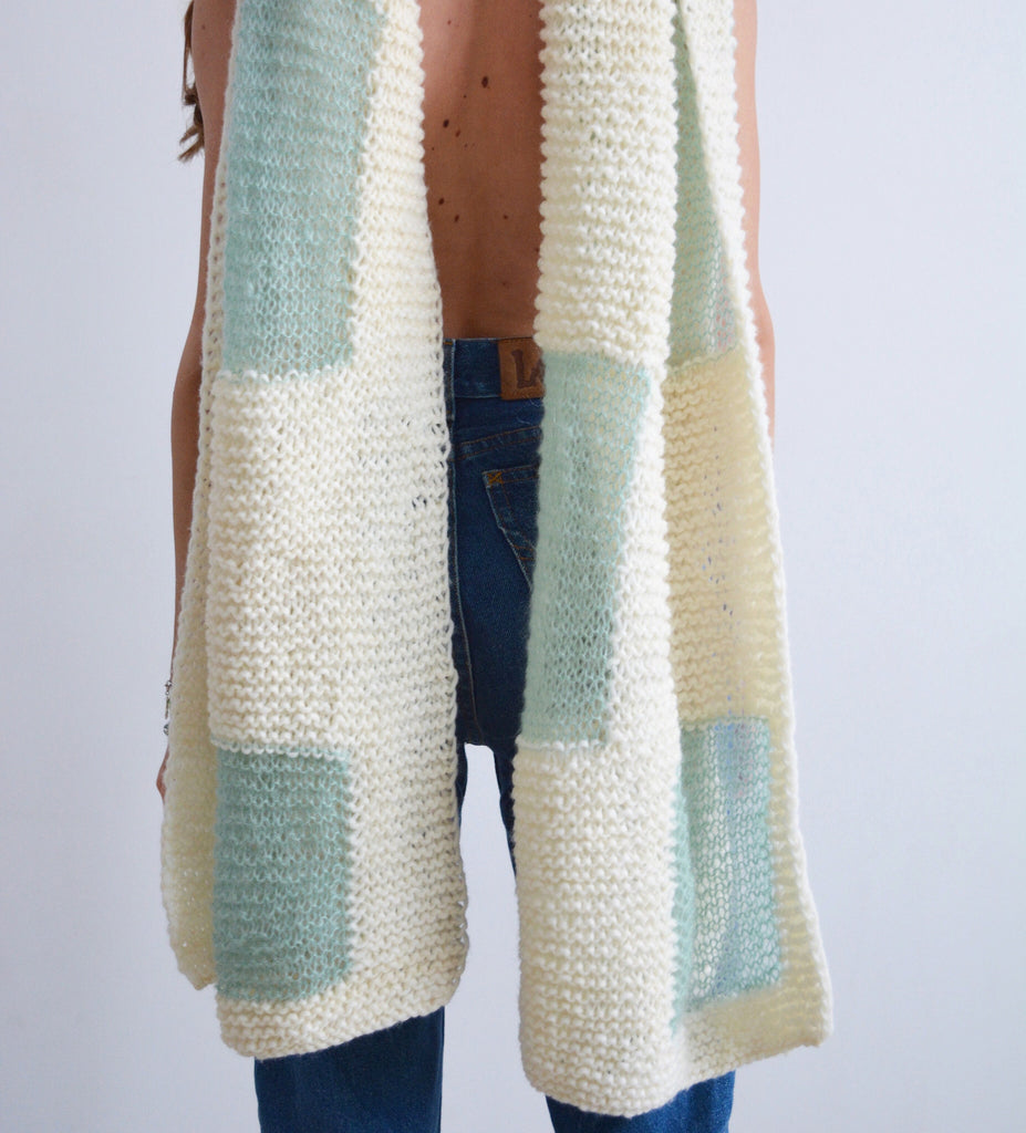 White merino wool winter scarf Chunky knit unisex scarf Long unique scarf Plaid oversized scarf Wool hand knit scarf Infinity scarf
