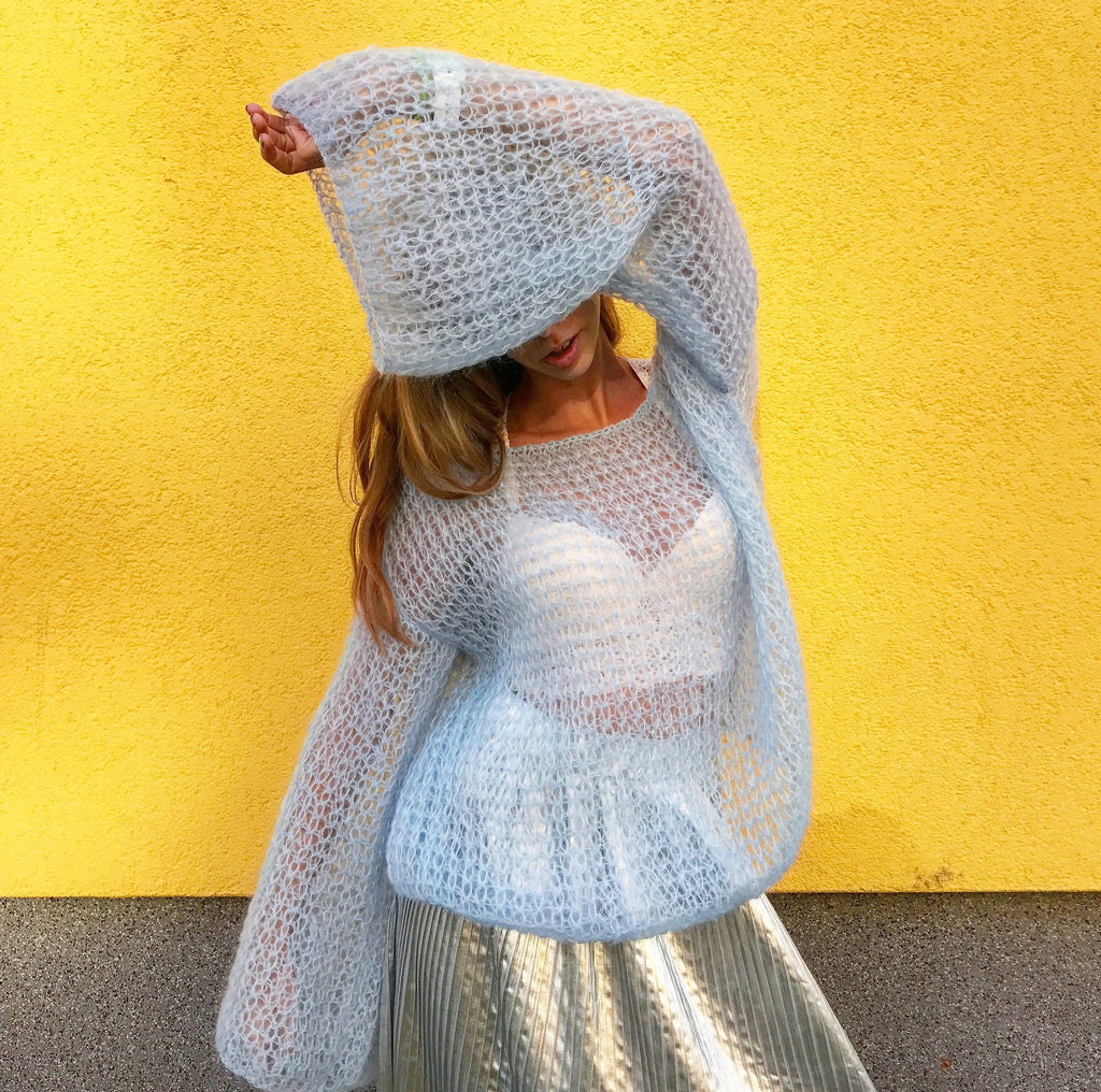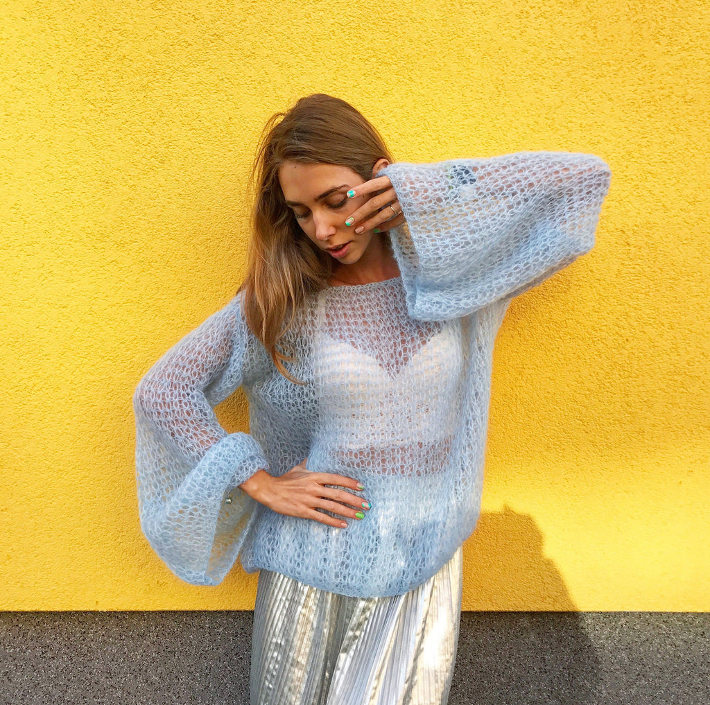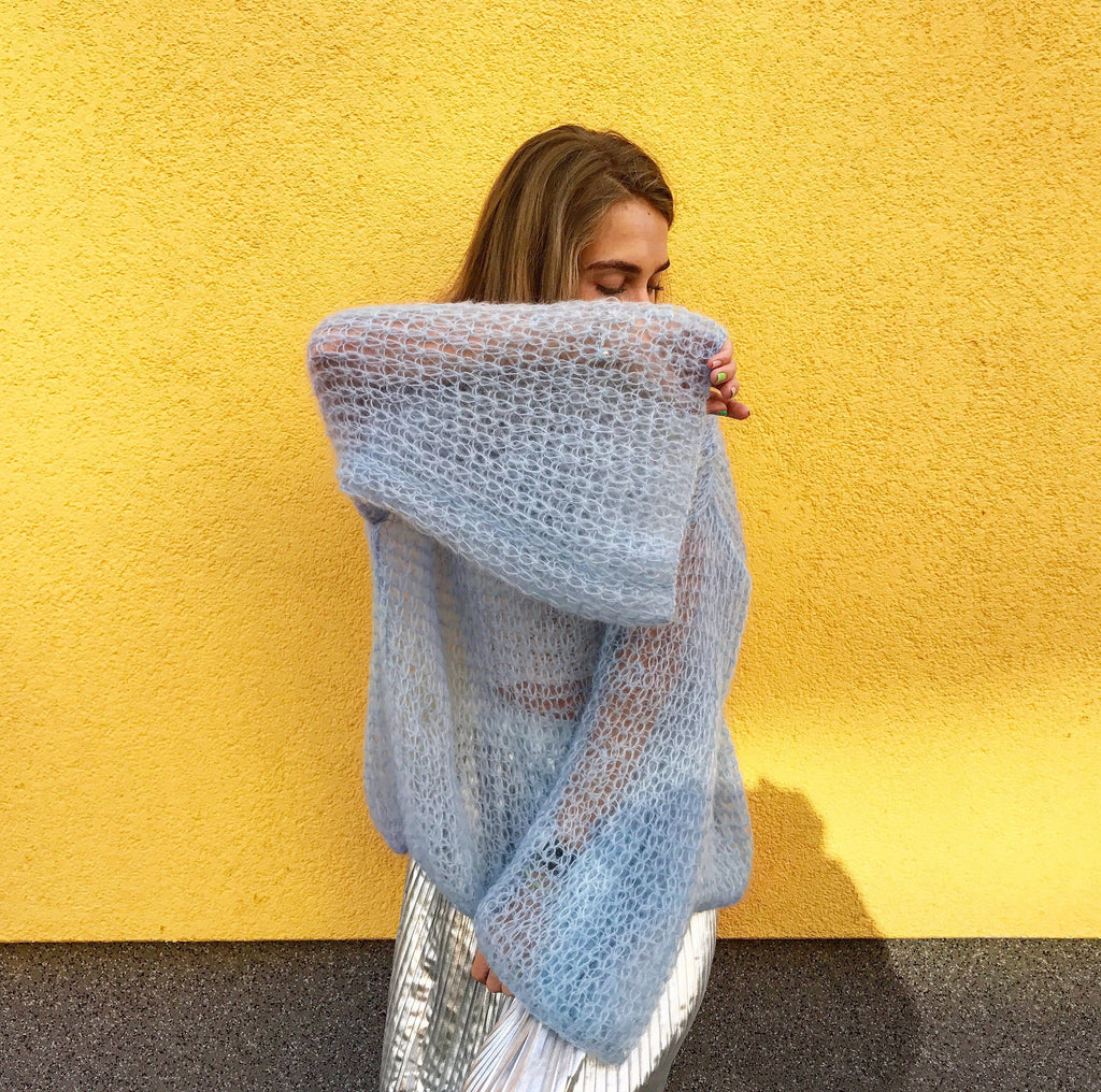 Women blue knit mohair sweater Loose mohair sweater Hand knitted wool sweater Mohair long big sweater Women mohair oversized sweater